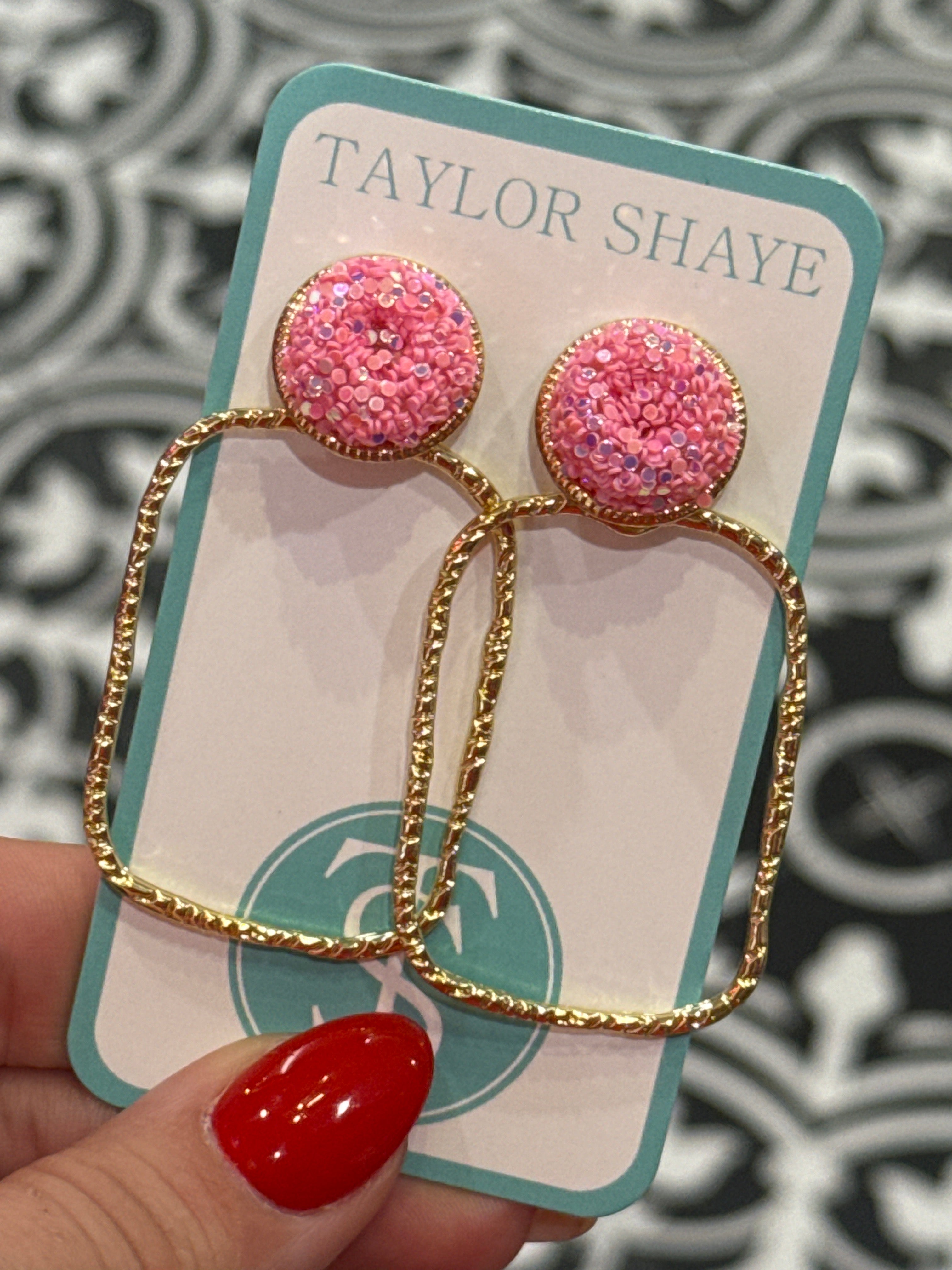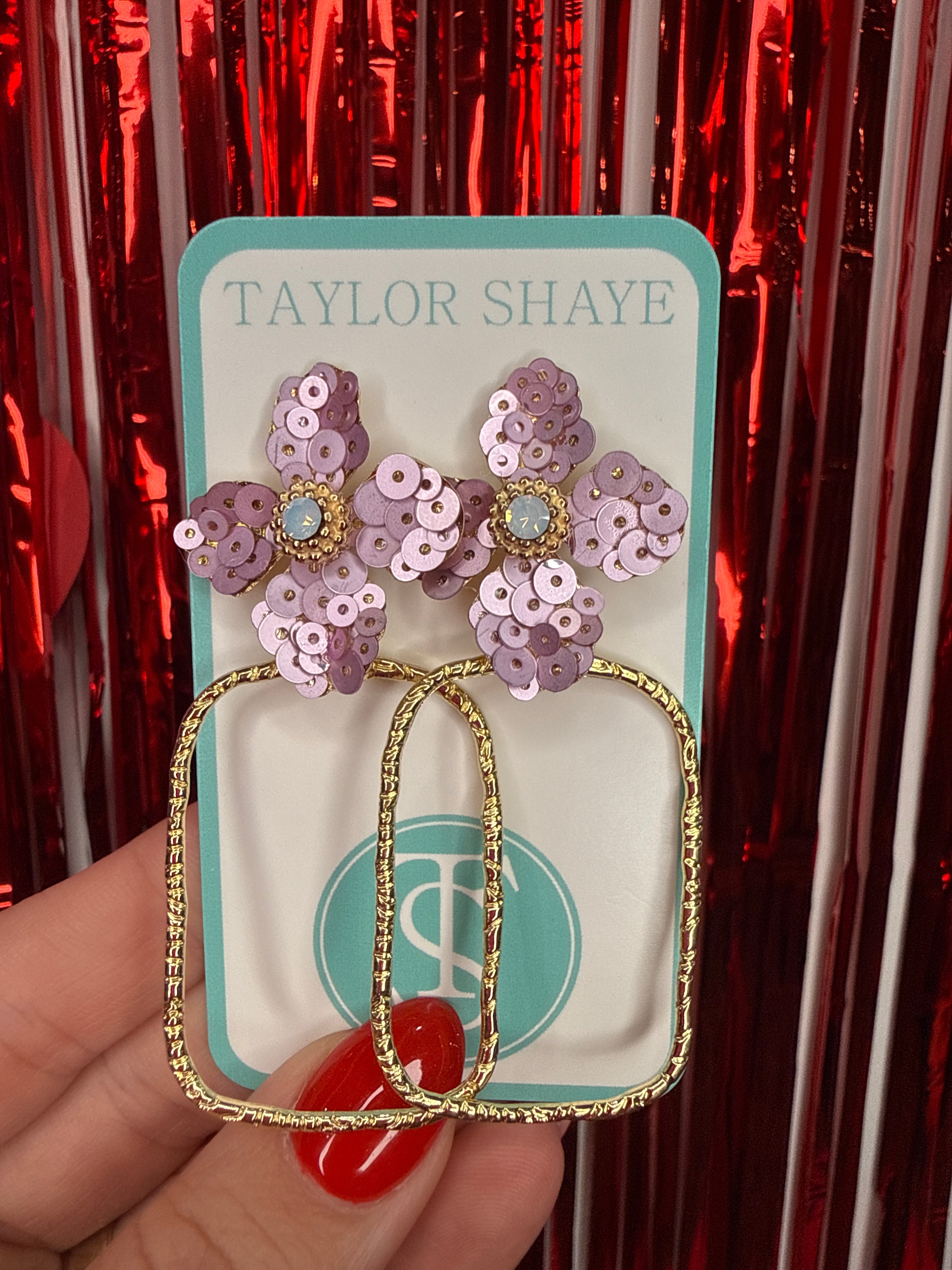 Pink Flower Sequin Hoops