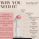 LumiSpa® gently—yet deeply—cleanses away dirt, oil, makeup, and toxins through its patent-pending counter-rotating, pore-tightening action. It leaves skin smoother and purer, while reducing the appearance of pores. And the stimulating, massaging LumiSpa experience will leave you looking forward to your next treatment. The device is antibacterial, waterproof, and comes with 2 year warranty!