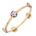 Our Enamel Claudia Bangle is the perfect accessory for Texas A&M Aggies fans everywhere! A classic worn gold bangle with enamel logo charms attached, wear it alone or stack it with the Enamel Hinge Bangles to make a stack statement.
