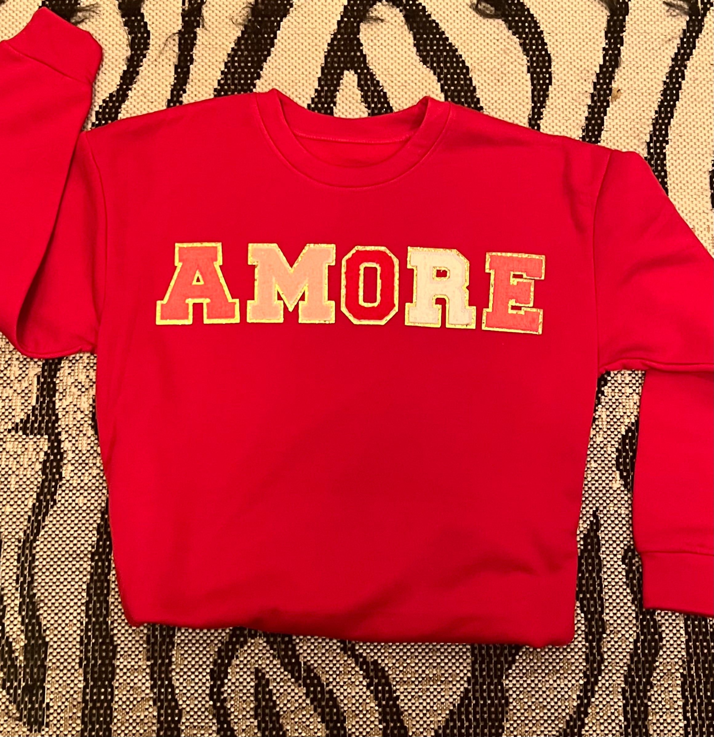 The meaning of the word Amore is simply love, let your heart and style shine through this February with this simple yet chic Amore sweatshirt!