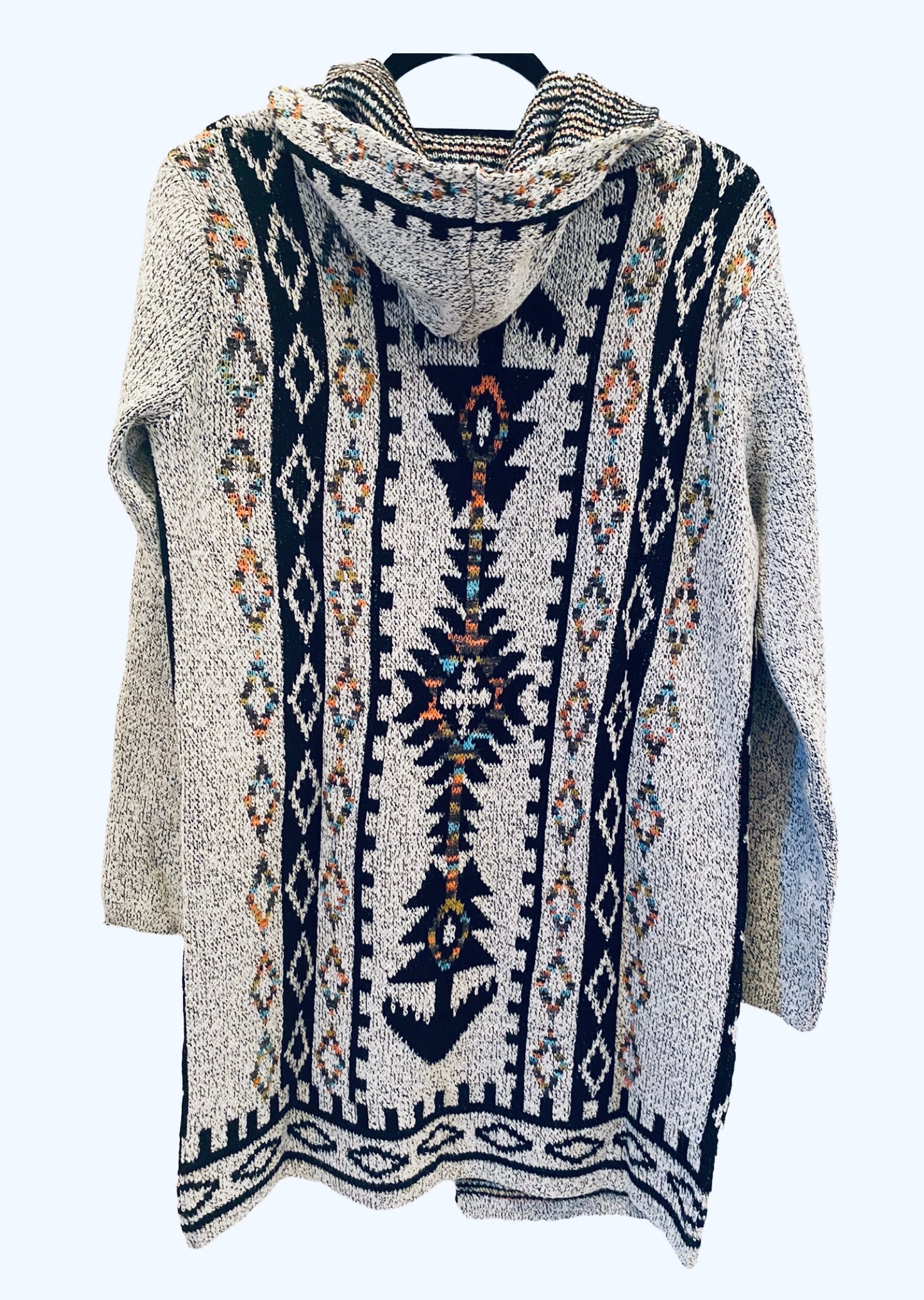 Aztec Print Cardigan With Hood