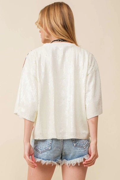 This sequin Aztec top is the perfect way to add some sparkle and color to your outfit! This bold and intricate Aztec pattern is sure to make a statement! We especially love how the light catches making this top pop even more! This top has a loose fit and is a great option for front tucking with jeans or a skirt!