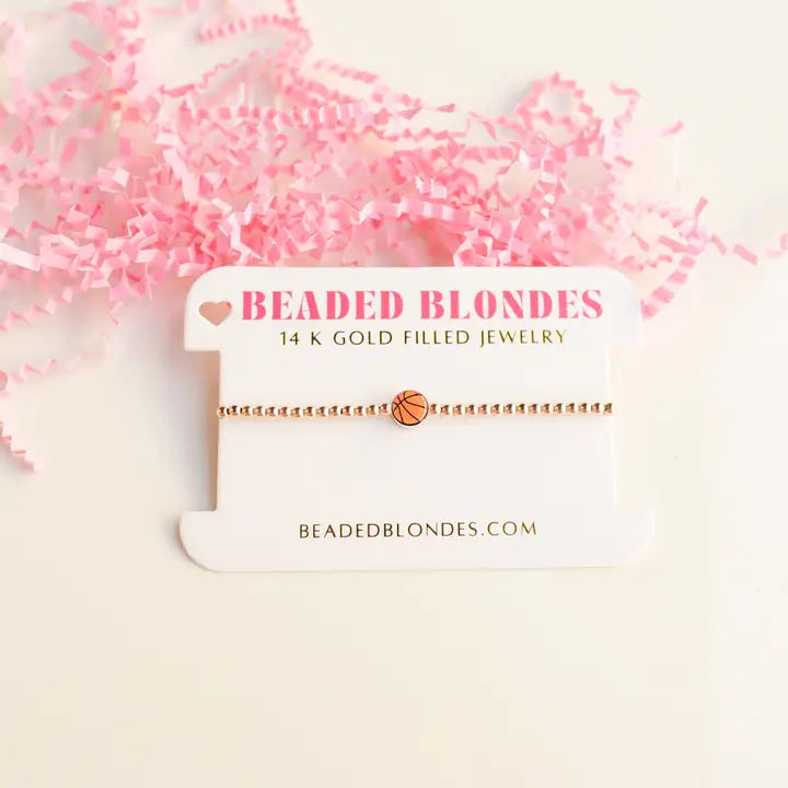 Basketball beaded bracelet. Our signature 14 K gold filled beaded bracelets with custom made beads.