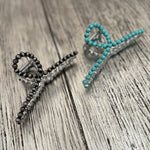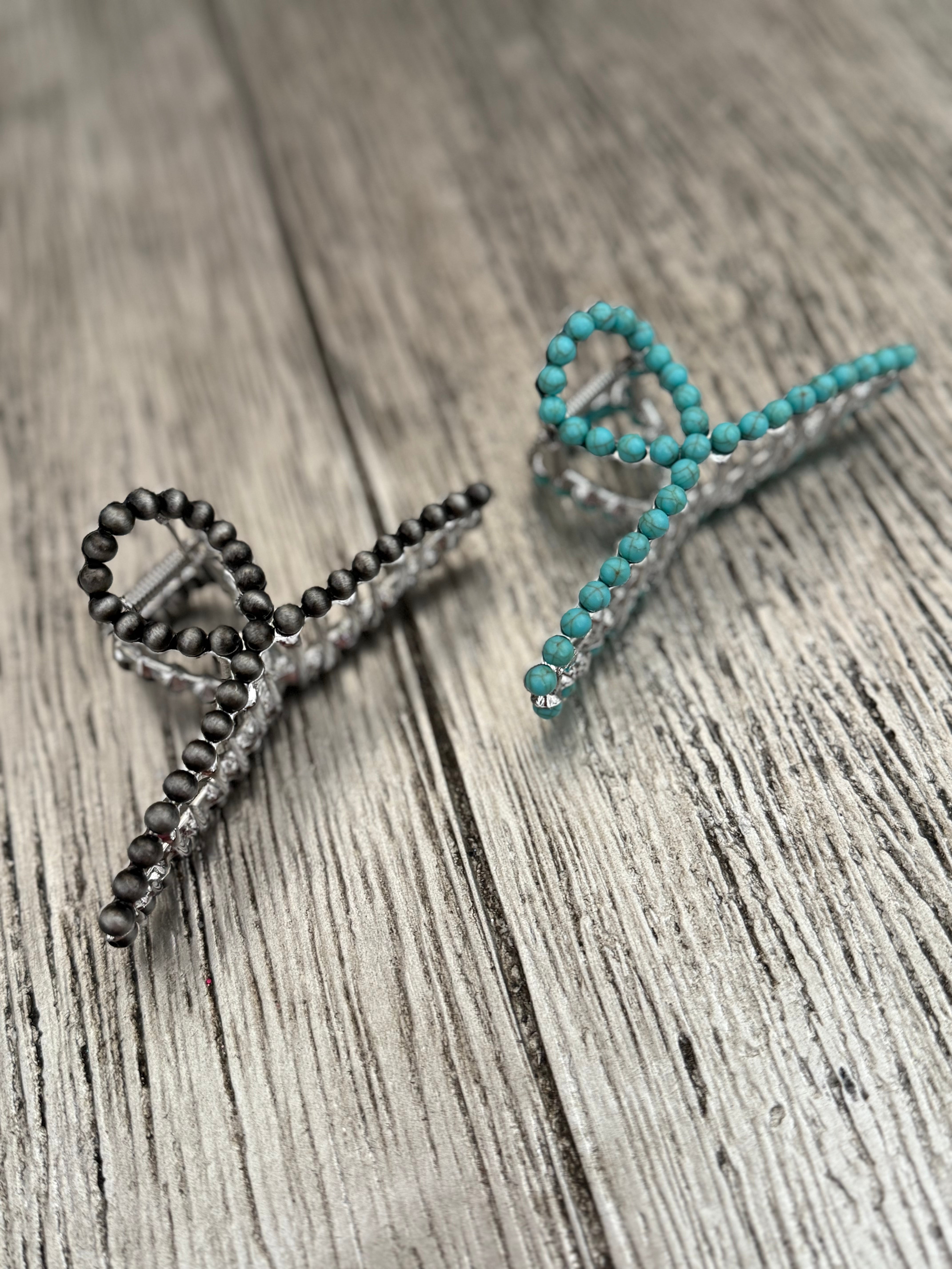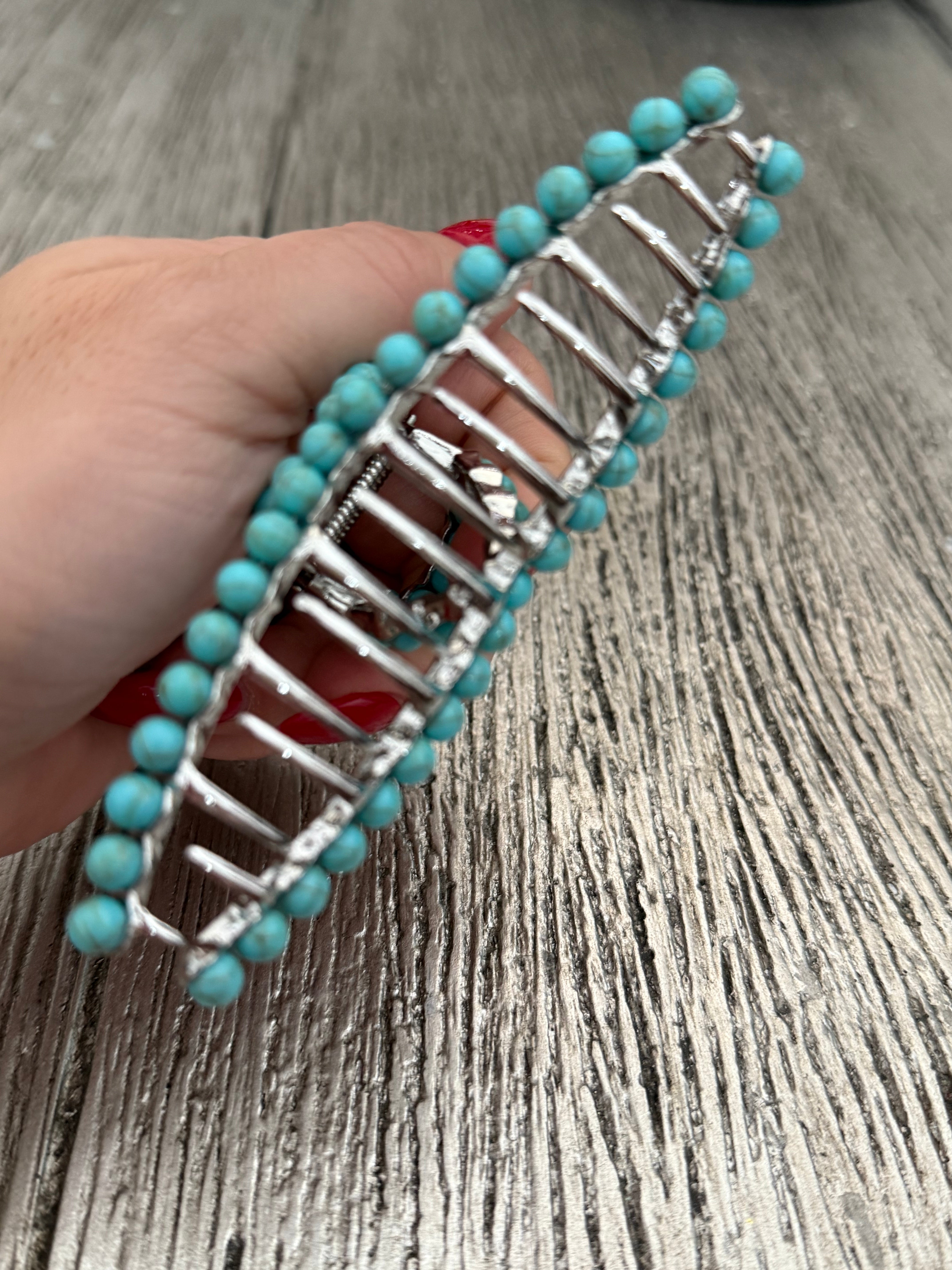 Look no further than our Turquoise and silver hair claw clips. These are heavy duty and super cute.