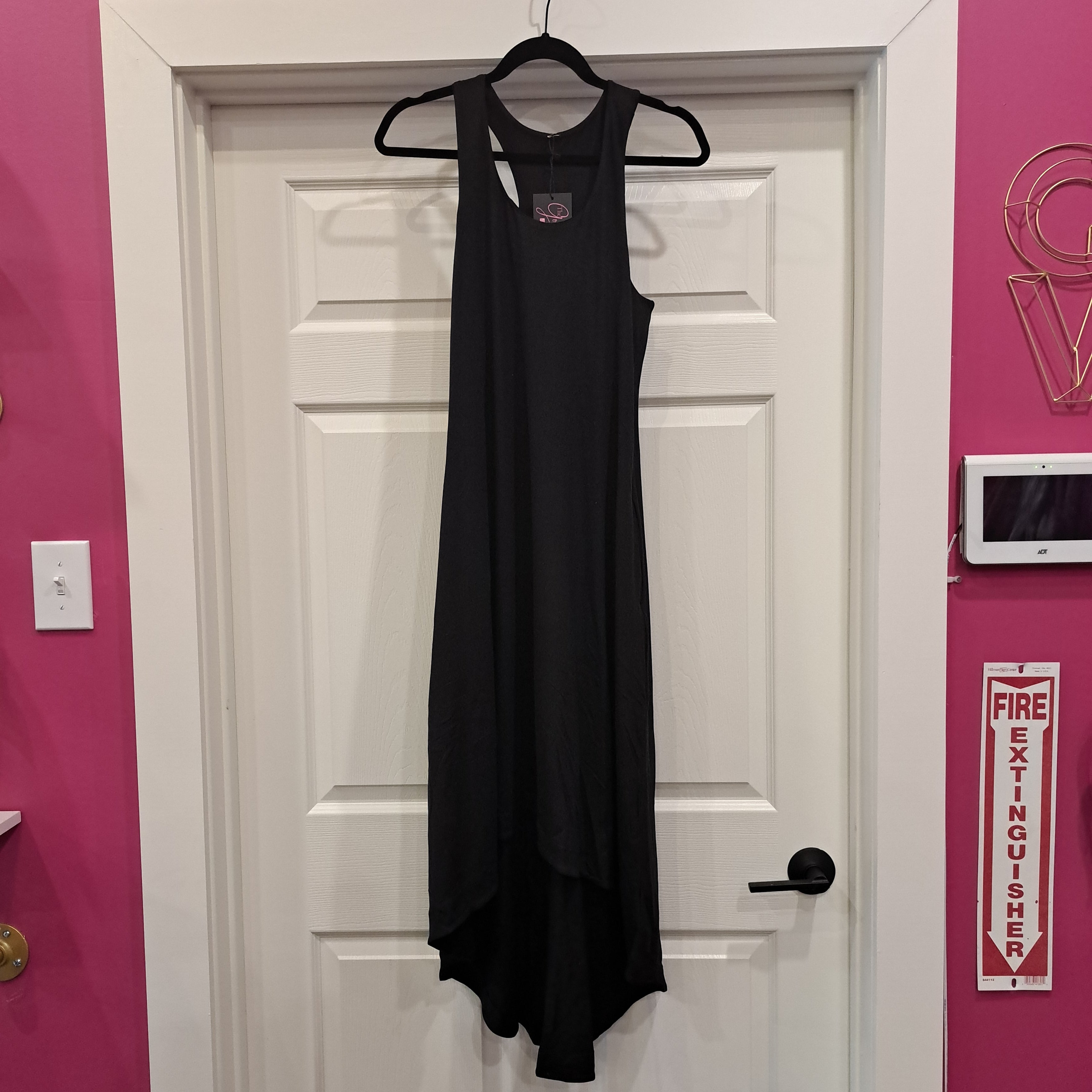 Black Butter Fabric Racer Back HI Low Hem Mide Dres With Pockets