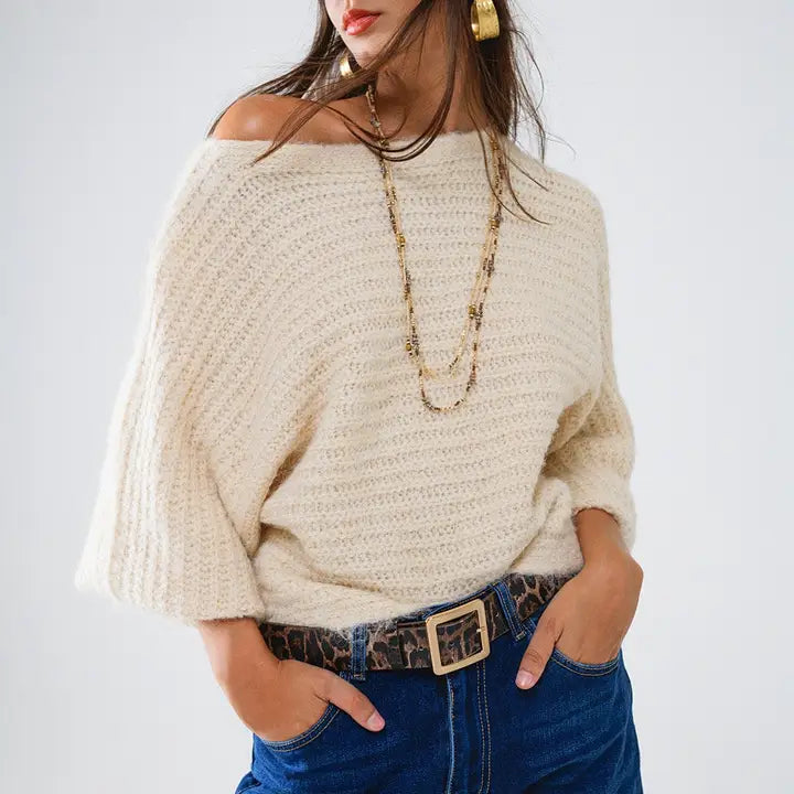 This flattering boat neck sweater is the perfect cozy addition to your fall wardrobe. Made from a chunky, fluffy rib knit, it’s soft and warm, giving you that snug, relaxed fit you’ll love. The 3/4 sleeves add a stylish touch, keeping it light and breathable while still providing warmth. The boho style gives it a laid-back, effortless vibe, whether you’re pairing it with jeans for a casual day out or dressing it up with a midi skirt for a more polished look. It runs true to size and is ideal for those looking for both comfort and style. One Size Fits All