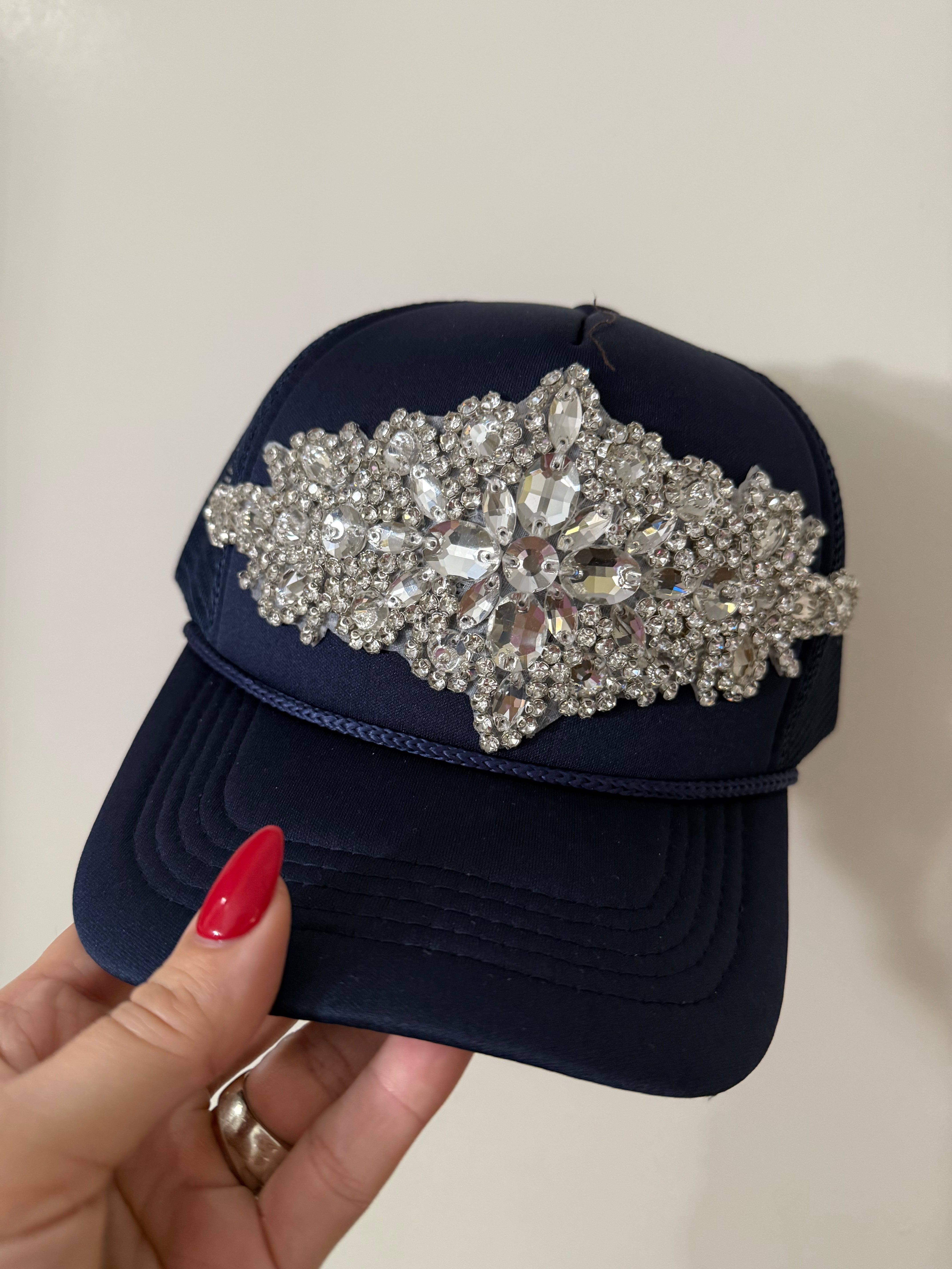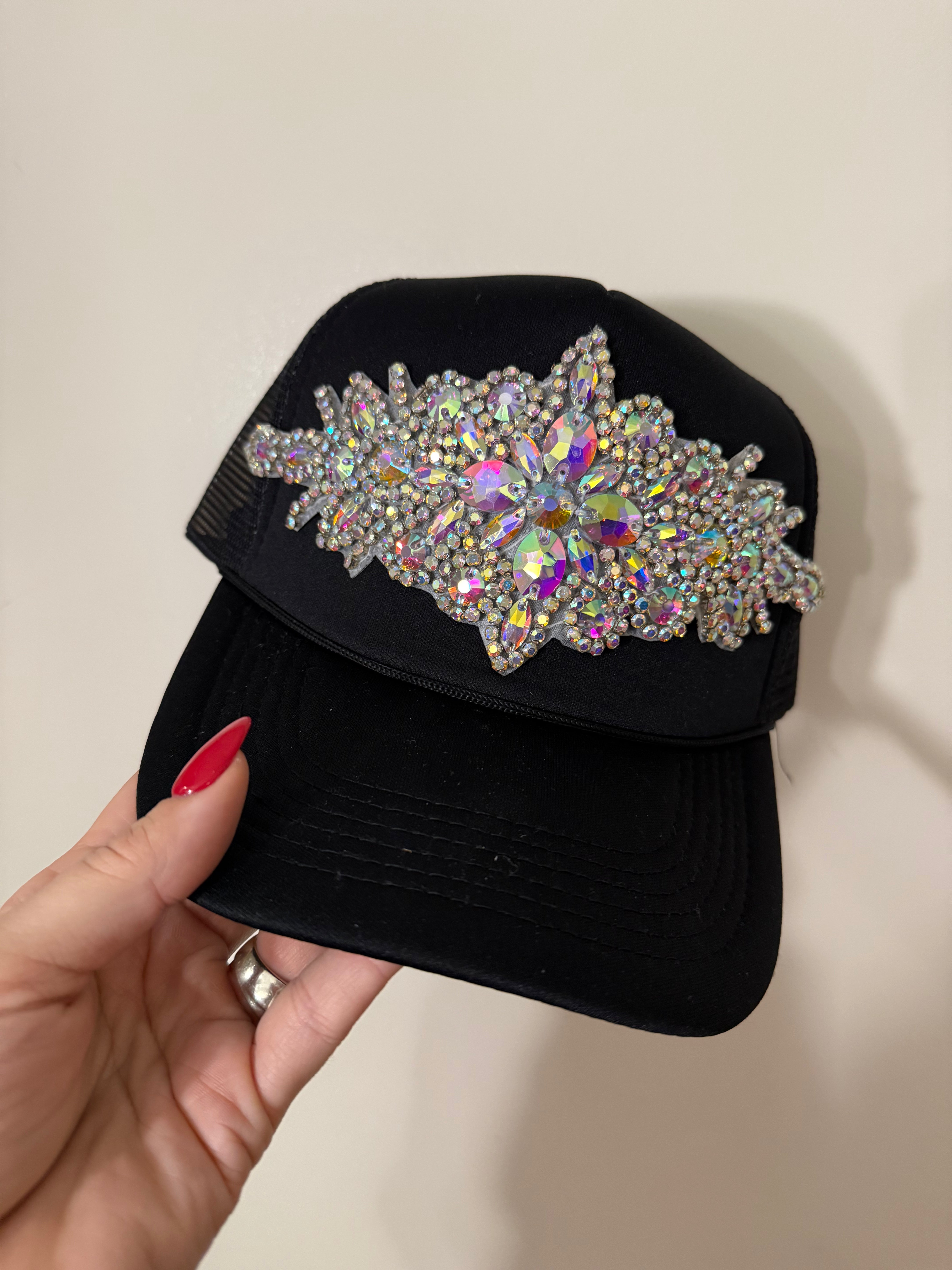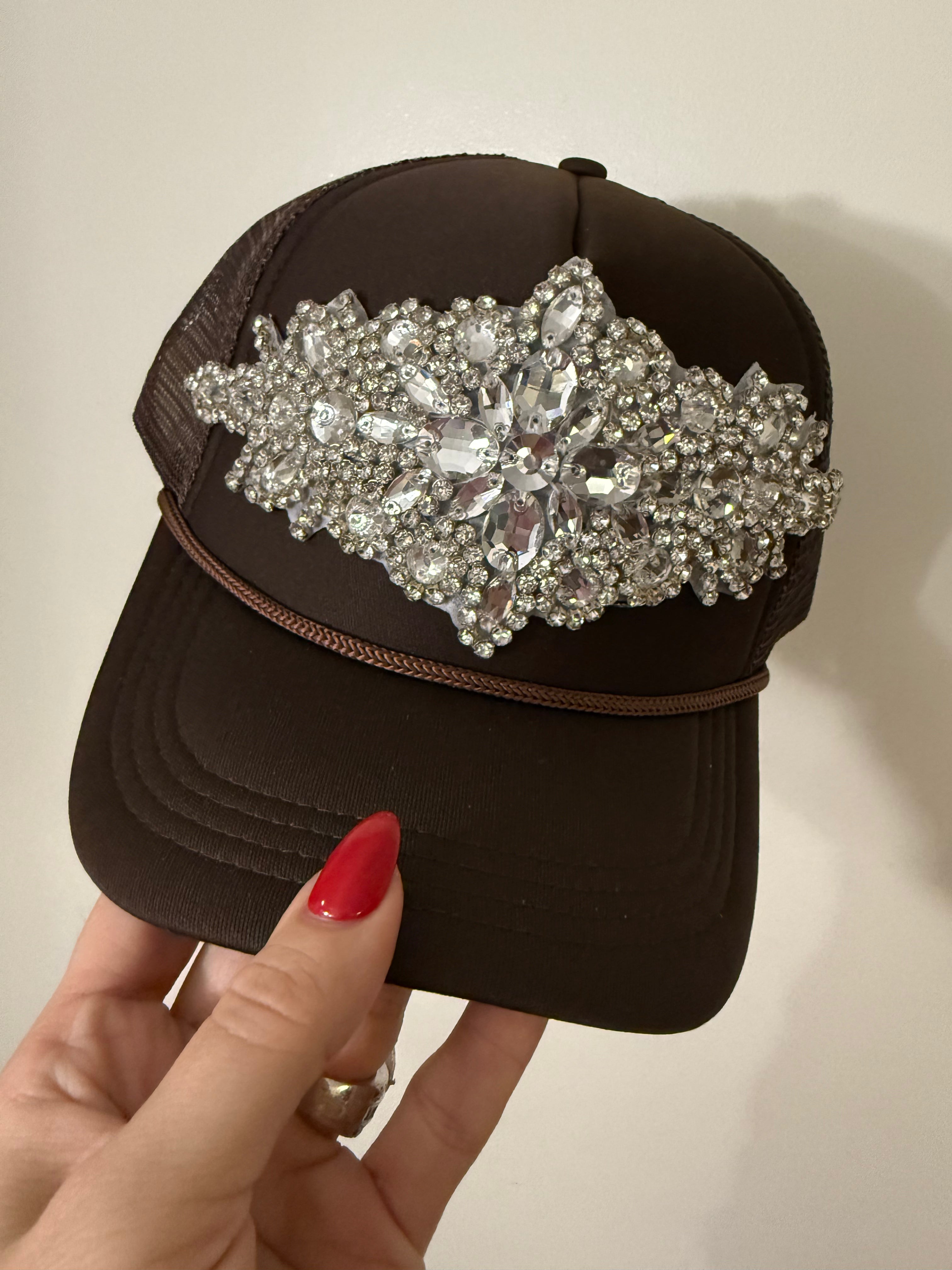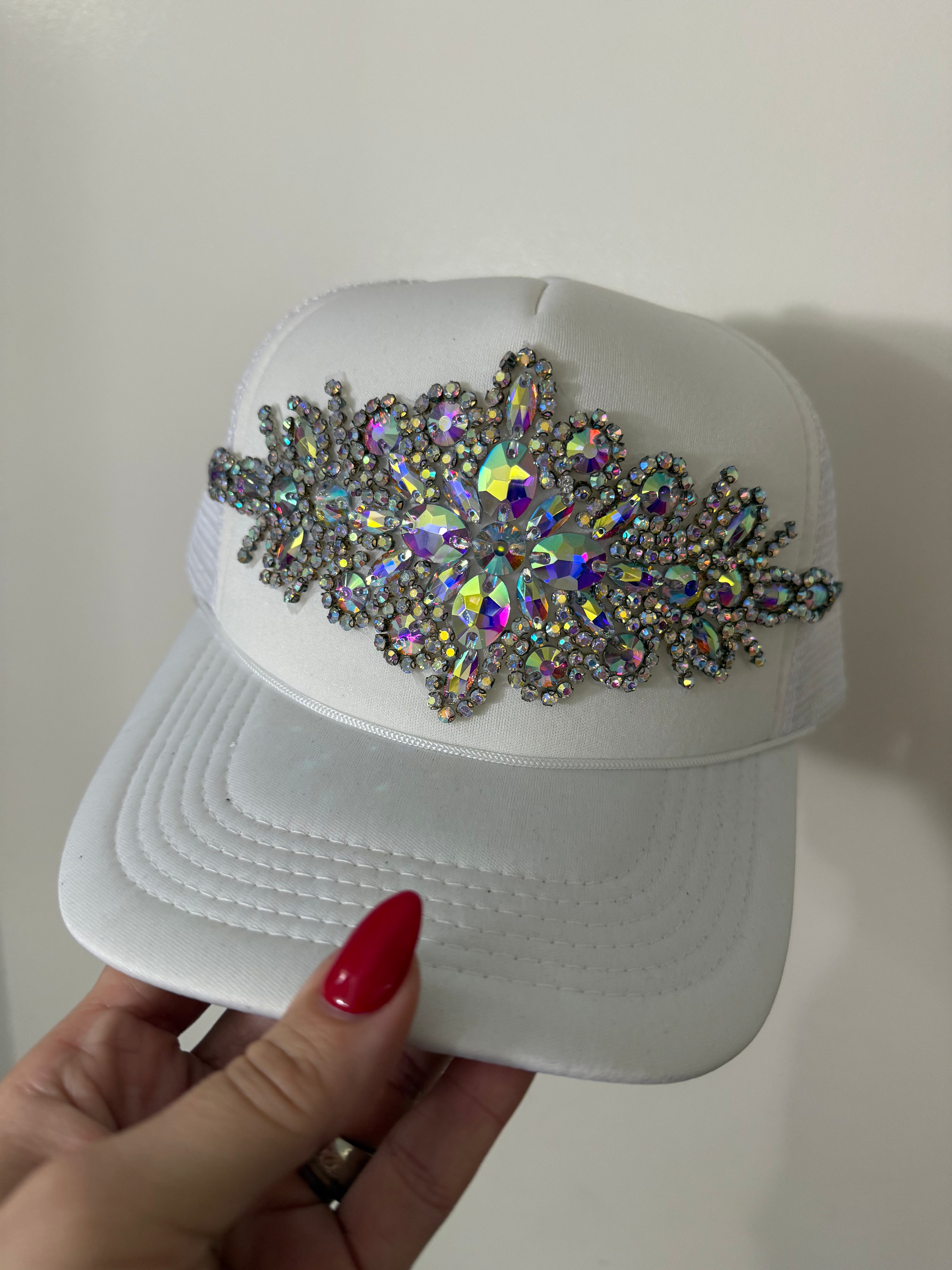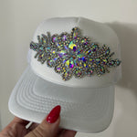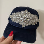 Large crystal Embellished trucker hat with a snapback