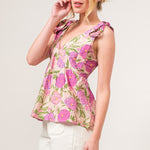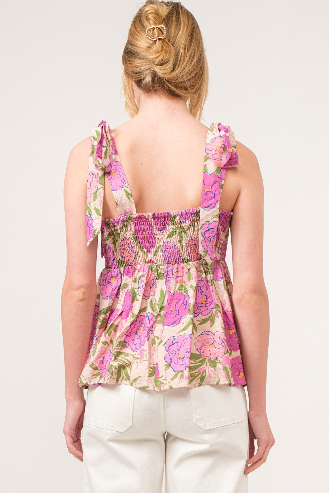 Embrace the beauty of spring with this charming blouse featuring delicate floral designs! This blouse offers a feminine with the bow ties at the shoulders, adding a whimsical detail to the overall design! The floral patterns bring a burst of color and nature inspired elegance making it a perfect choice for the season.