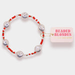 The Sadie bracelet is a mix of large synthetic pearls and 2.5 gold filled beads with czech glass beads in your favorite team's color.