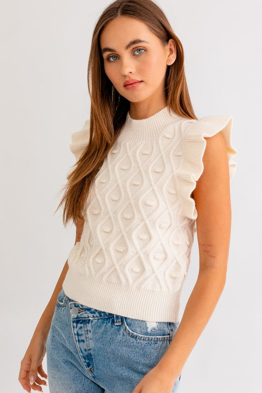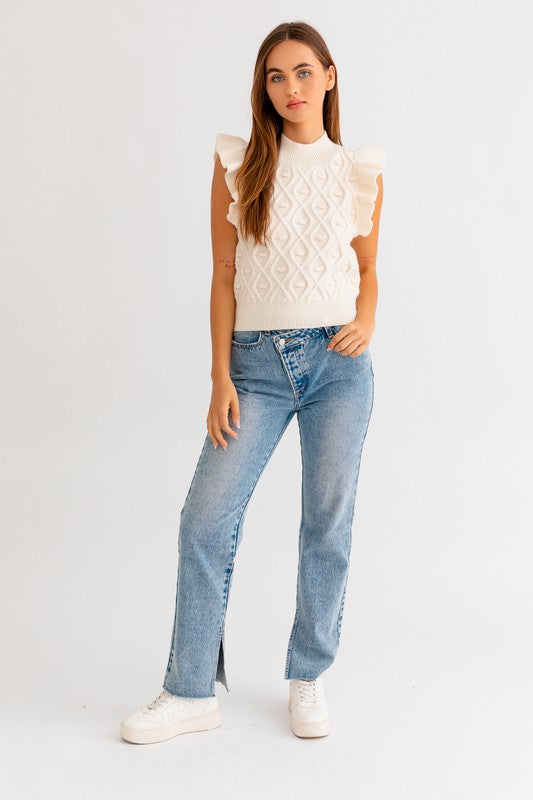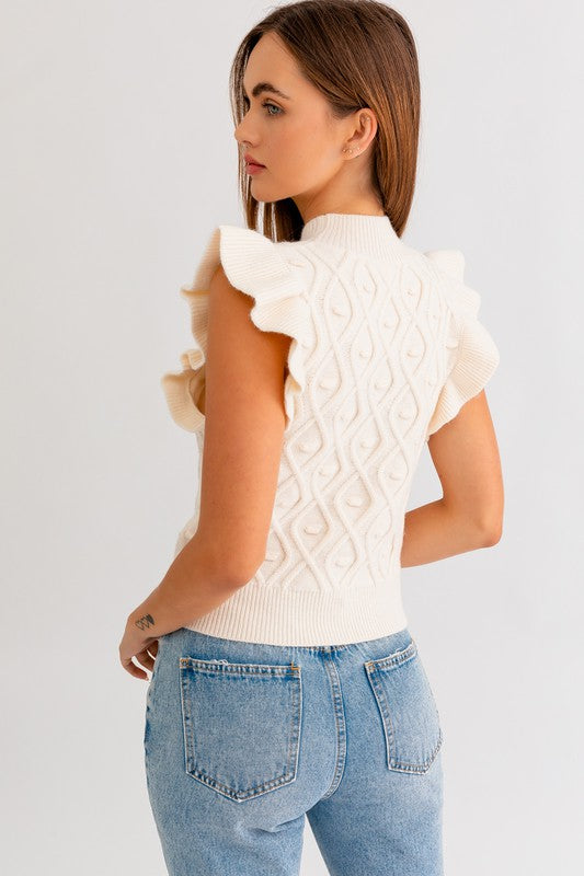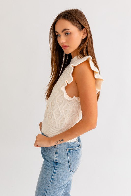 MOCK NECK RUFFLE DETAIL CABLE TANK