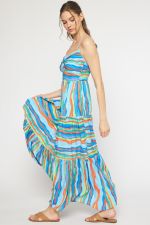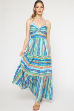 Printed maxi dress featuring cut out detail at front. Adjustable straps. Smocking at back. Lined. Woven. Non-sheer. Lightweight.