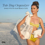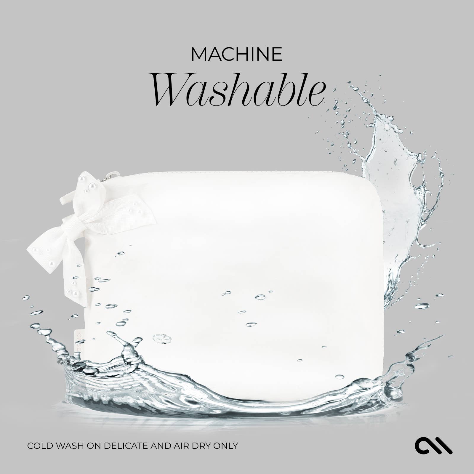 The Special Edition Bow Waterproof Beach Zip Pouch is your new go-to bikini bag, makeup bag, tote bag organizer and more! Stash sunscreen, a wet bathing suit, or tanning oil inside to keep your tote dry, clean, and organized. Crafted from waterproof material, the zip pouch also protects your phone, e-reader, or wallet from sand and splashes. This pouch features a statement bow that's as sweet as it is sophisticated Toss it in your tote for beach trips, pool days, or travel, then cold wash and air dry when it needs a refresh.