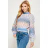 Chevron lurex stripe mock neck knit sweater. This style features ribbed band at mock neck/hem/cuff, long sleeves, and zig zag lurex stripe throughout.