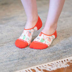 The newest addition to our line of printed socks is the No Show Sock, playfully printed and finished with no-slip grips on the back heel portion of the sock so they stay in place when you don't!