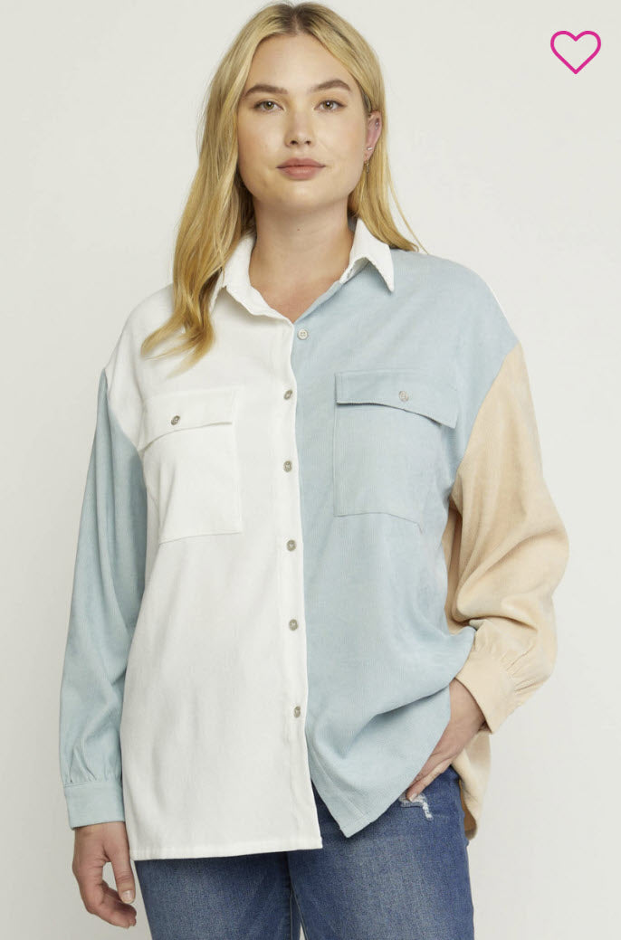 Color Block Button Down