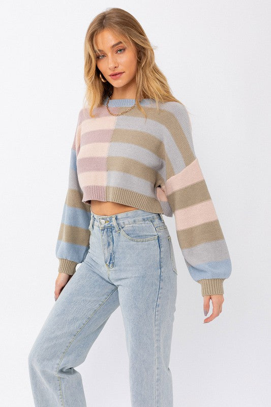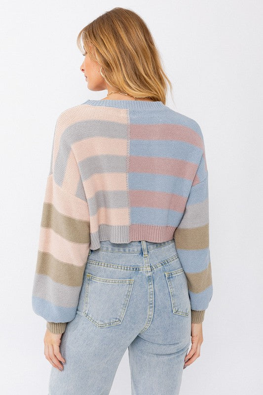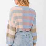 Long sleeve color block cropped sweater is the perfect transition colors.