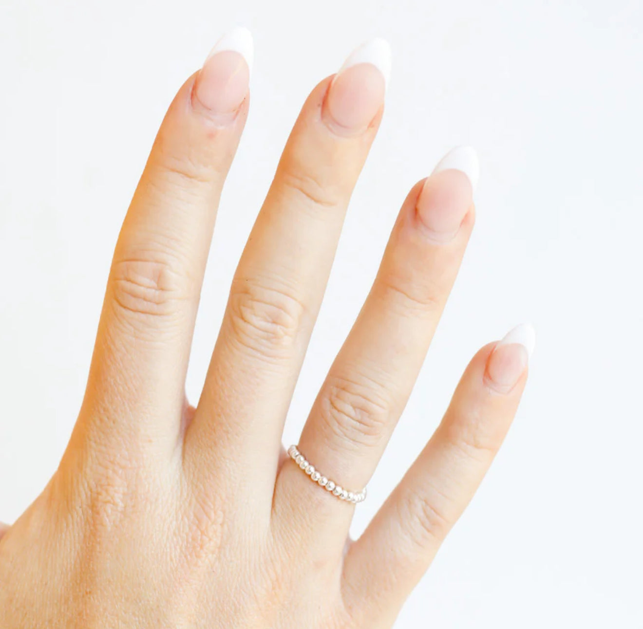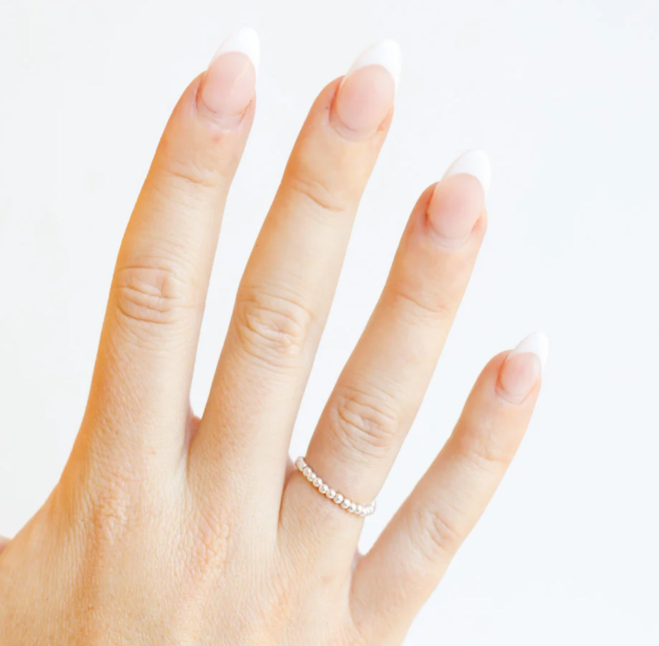 The Lexi Beaded Band is the perfect in between bead size of 2MM. Our dainty silver and gold filled Beaded Bands™ are an elastic ring perfect to wear alone or to be stacked with your class ring or other statement rings. We suggest getting the same size as your ring • Sterling silver & elastic string • Handstrung in College Station, Texas. Sourced in the US. • Waterproof, workout proof & tarnish proof • Care tips - harsh chemicals can cause slight darkening