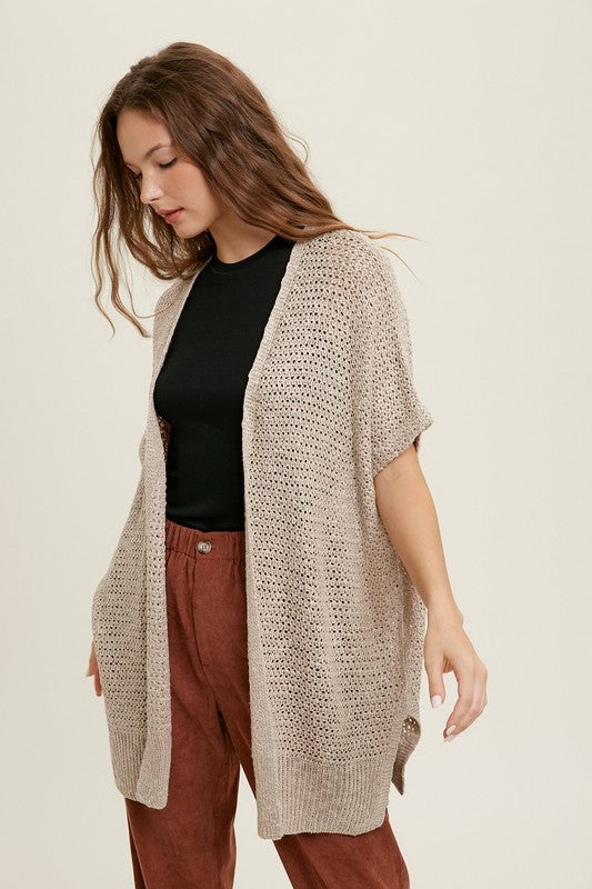 CROCHET SWEATER CARDIGAN WITH SIDE SLITS 100% ACRYLIC * Due to lighting and differences in monitors, actual colors may vary slightly from what appears onlin