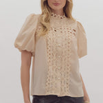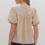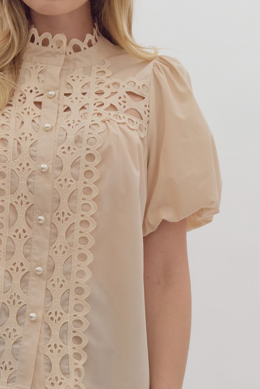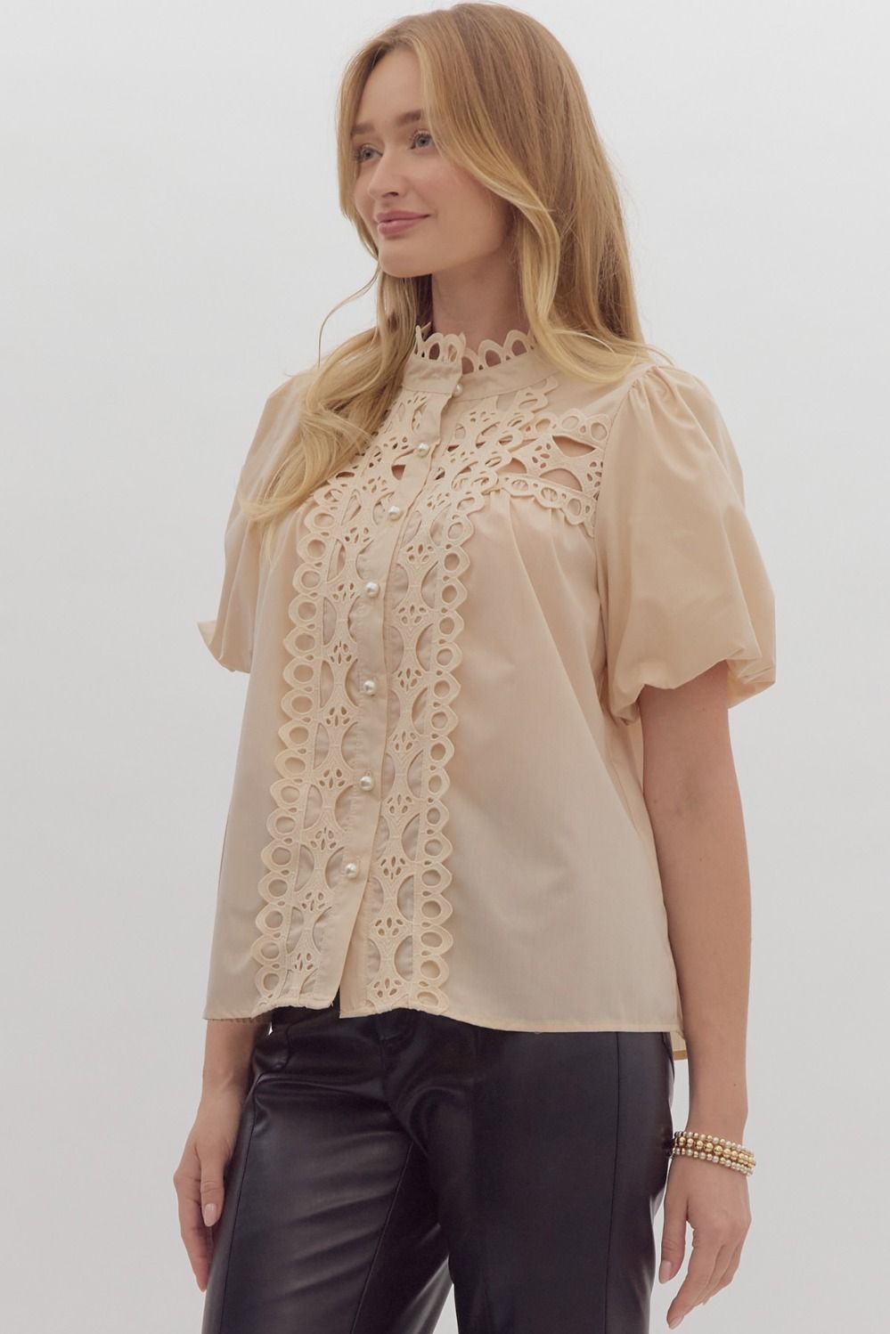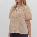 This solid short puff sleeve button-up top is a charming addition to your wardrobe! With its playful puff sleeves and delicate pearl button embellishments, it strikes the perfect balance between sweet and stylish. The crochet lace detail adds a lovely touch, elevating the classic button-up to something special. Lightweight and semi-sheer, it’s perfect for layering over a cute bralette or tank, making it a versatile piece for any season. Unlined for that breezy feel, it’s ideal for everything from a casual day out to a fun evening with friends. Pair it with jeans or a skirt, and you’ll feel effortlessly chic!