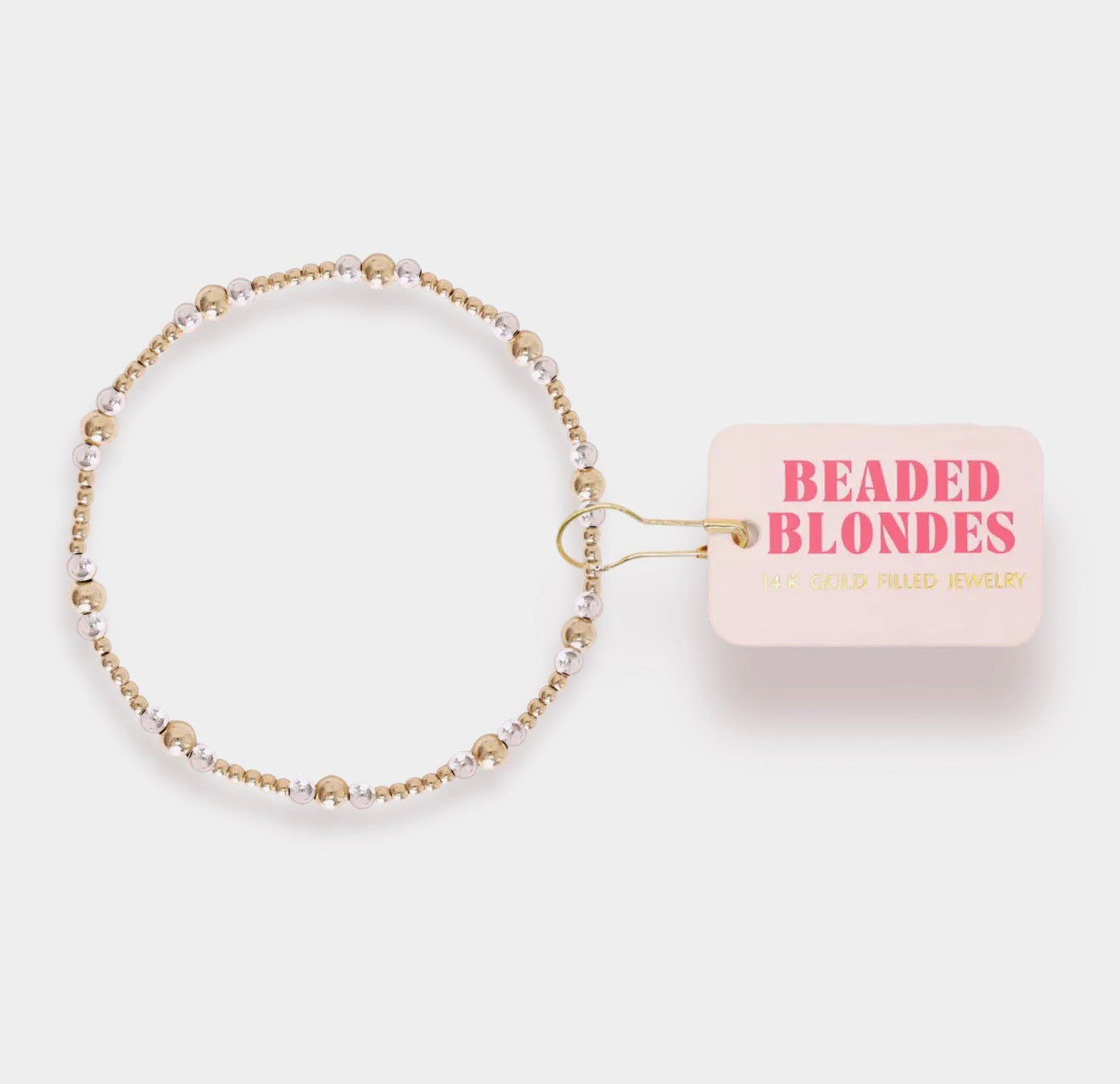 2MM gold bracelet with 3MM & 4MM cascading silver mixed metal design.