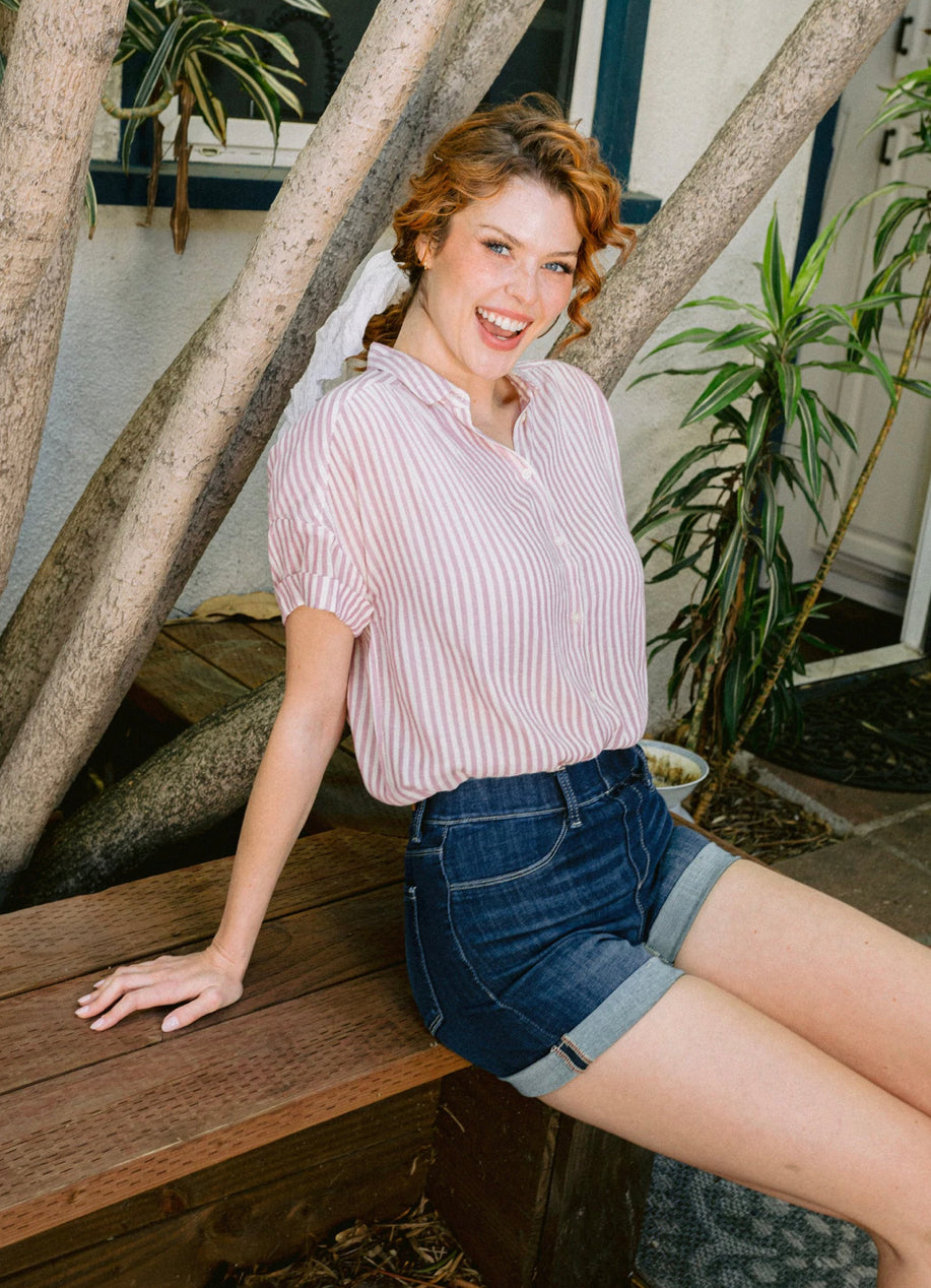 Dark Wash High Waisted Pull-On Shorts - comfort for days