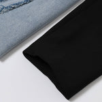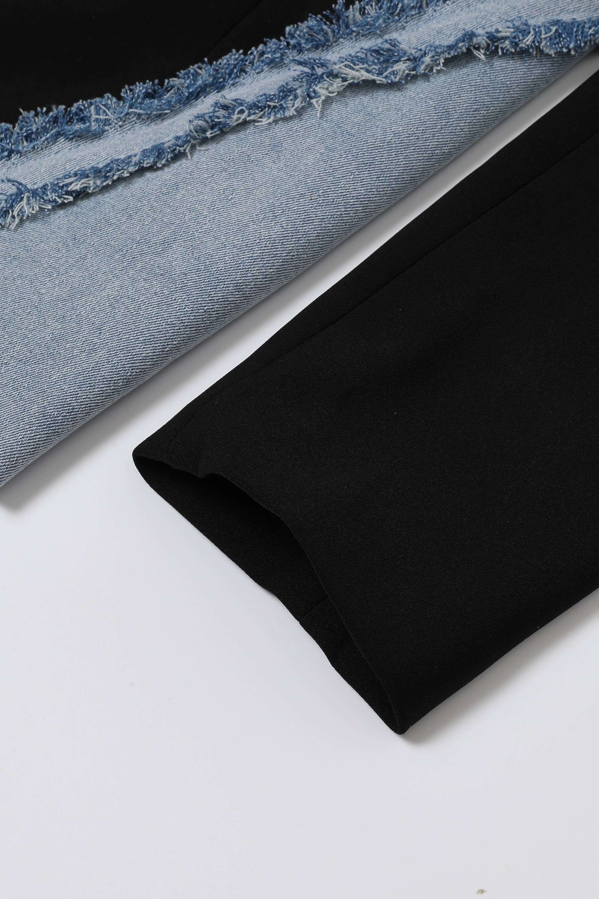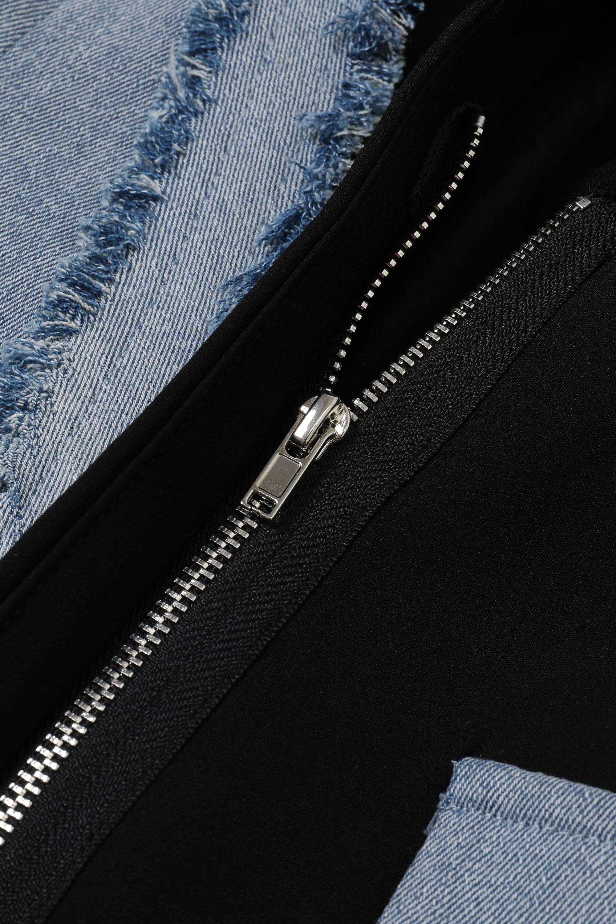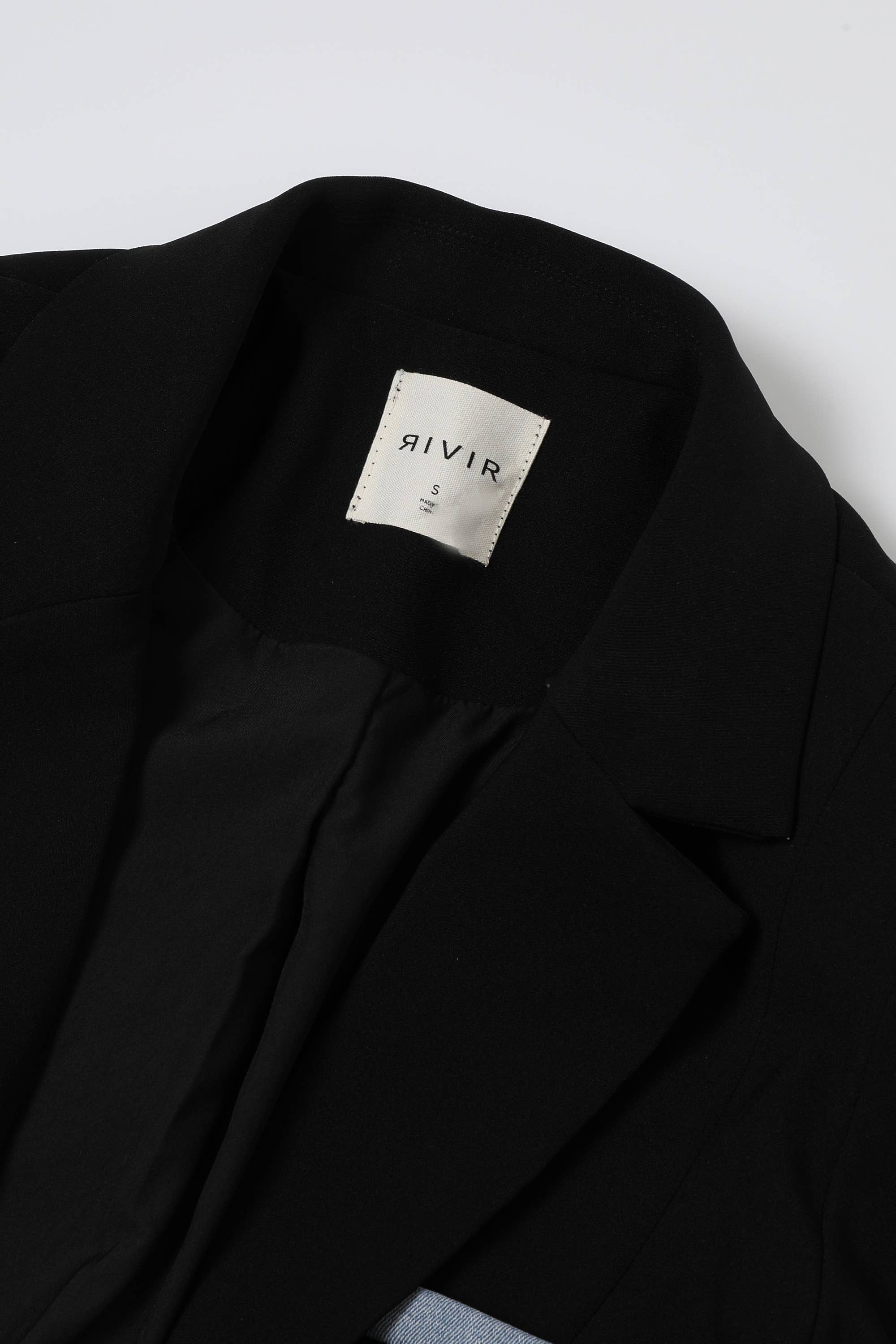 Denim Mixed Media Blazer Dress 92% Polyester 8% Spandex Combo: 70% Cotton 30% Polyester Lining: 100% Polyester