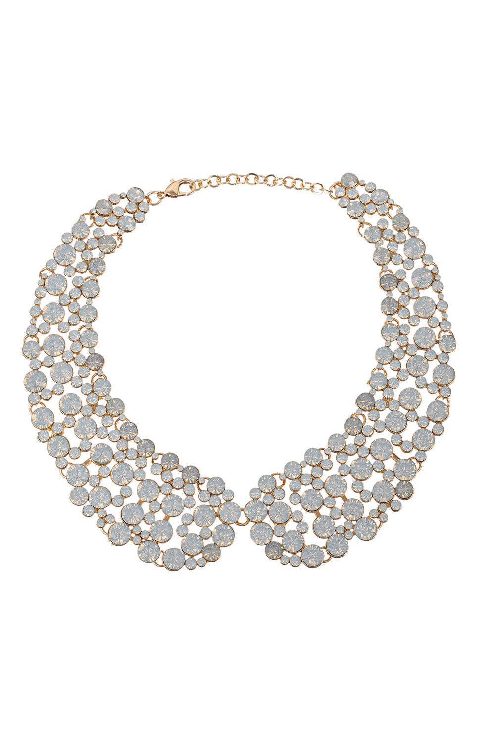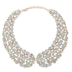 Enhance your style with a rhinestone Collar Necklace. This elegant necklace features a shiny AB stone that catches and reflects light, adding a touch of sparkle to your look. The collar design adds a sophisticated touch to any outfit. Elevate your wardrobe with this timeless piece. Product Details: * Metal: Zinc Alloy * Stone Type: Glass Crystal * Size: 12" Drop * Clasp: Lobster