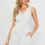 This vest is stylish and environmentally conscious, made entirely from recycled materials, designed with sustainability in mind. The vest is crafted from recycled polyester, which not only reduces waste but also minimizes the environmental impact associated with traditional manufacturing processes. The fabric itself is soft and durable, offering comfort and practicality while embodying a commitment to eco-friendly practices. In terms of design, the button-down vest features a sleek and modern silhouette, tailored to fit comfortably yet stylishly. It includes a buttoned front closure, allowing for easy wear and adjustment