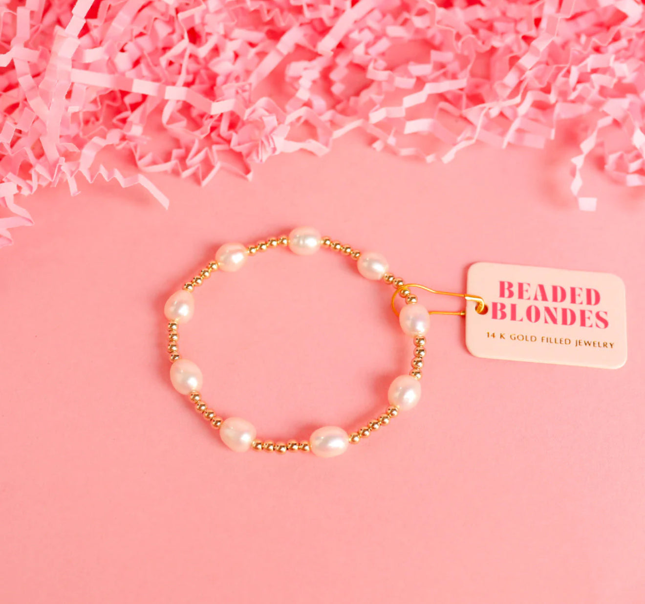 Beaded Blondes offers styles with both freshwater and synthetic pearls—this design features fresh water pearls perfect for everyday wear. Please note these will all be uniquely shaped and colors may vary as they are natural.