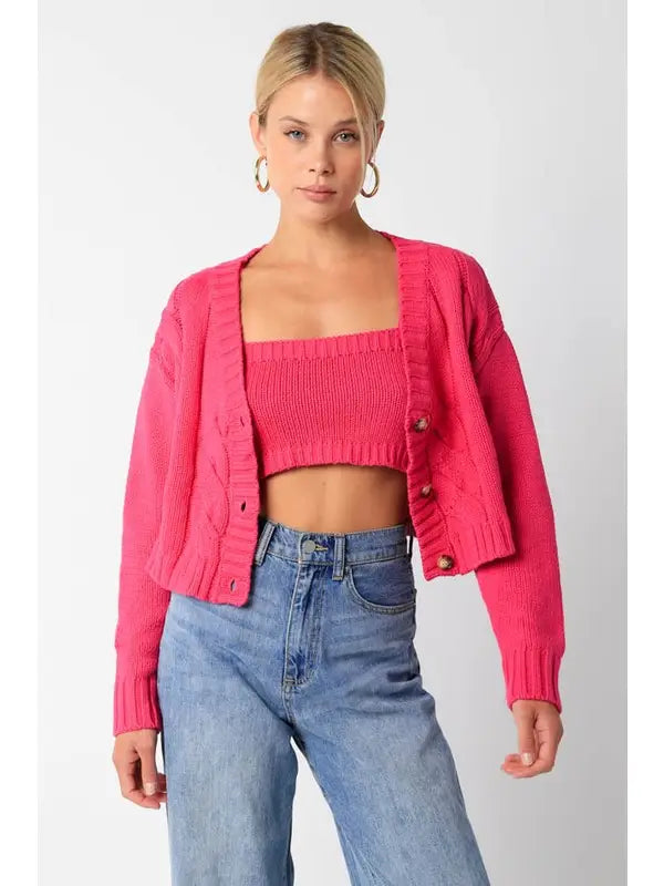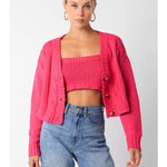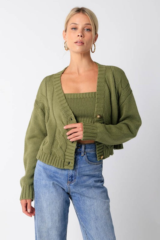 Our Everyday Cardigan features a front button-down closure and a cable knit. Perfect statement for the most casual outfit!