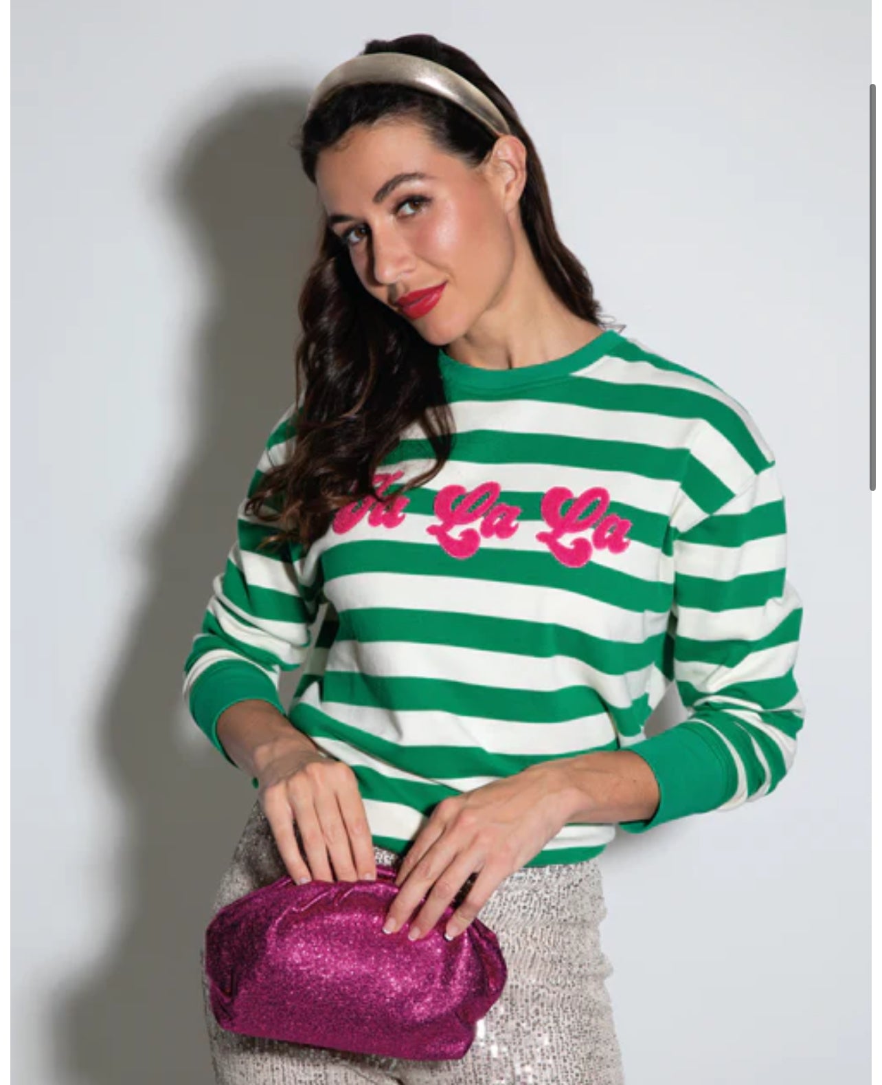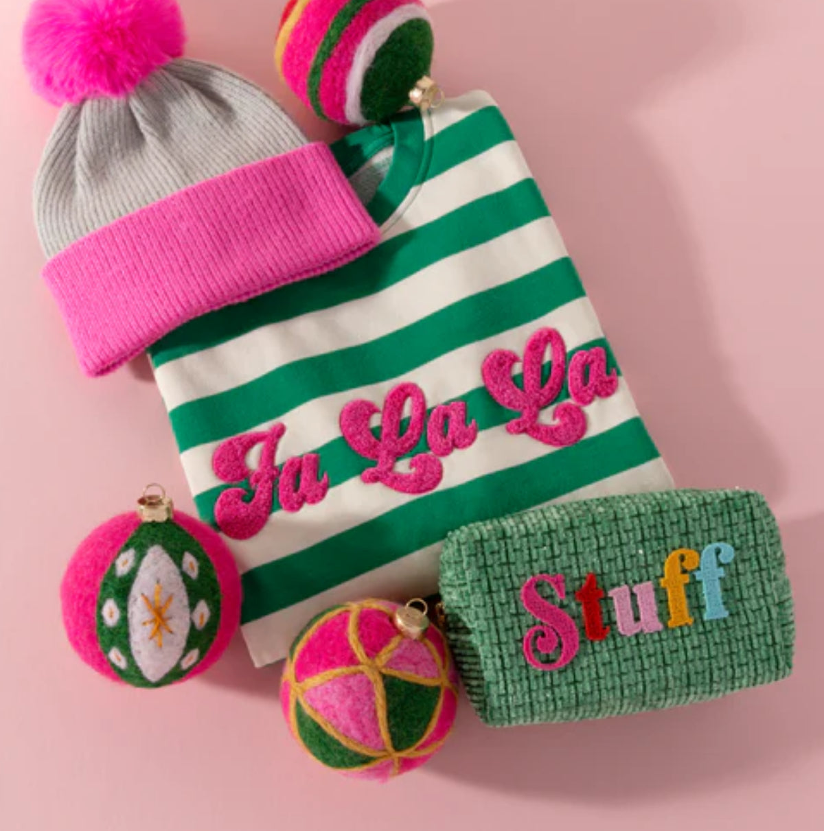 Creatures of comfort, rejoice! Whether you’re shopping for the season’s best gifts or opening presents by the tree, you will appreciate the snug and soft holiday sweatshirts from Shiraleah. The vibrant and festive “Fa La La” Stripe Sweatshirt is made from a lightweight cotton blend that features a trendy pattern of horizontal, rugby-style stripes in green and white. The words “Fa La La” are embroidered in vibrant pink letters across the front, setting the tone of holiday cheer! Its classic round neck and banded hems make it the perfect casual fit and your ultimate holiday season accessory. Pair with other items from Shiraleah’s Merry Everything Collection to complete your look!