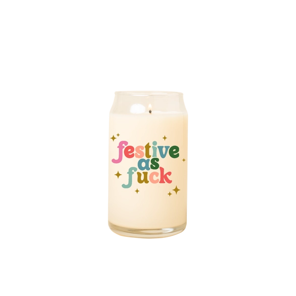 This candle is all about bringing some bold, unapologetic holiday spirit into your space. This tall candle proudly declares “Festive as F*ck,” setting the tone for a fun and irreverent celebration. Its standout message makes it clear that you’re all about embracing the holiday season with a cheeky sense of humor.