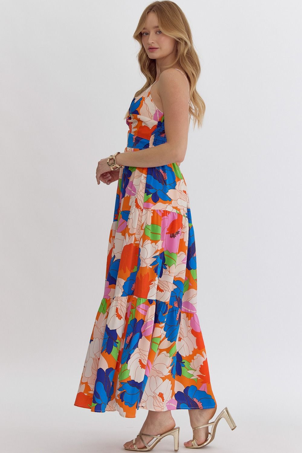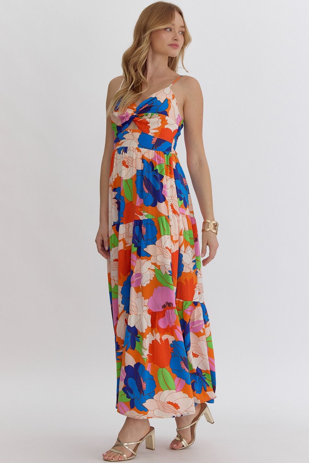 Level up your style this summer with our stunning floral print maxi dress, featuring a v-neckline and intricate cut-out details at the front. This dress exudes elegance and charm. The smocking in the back ensures a comfortable and flattering fit, while the adjustable straps allow you to customize the length to your preferences!