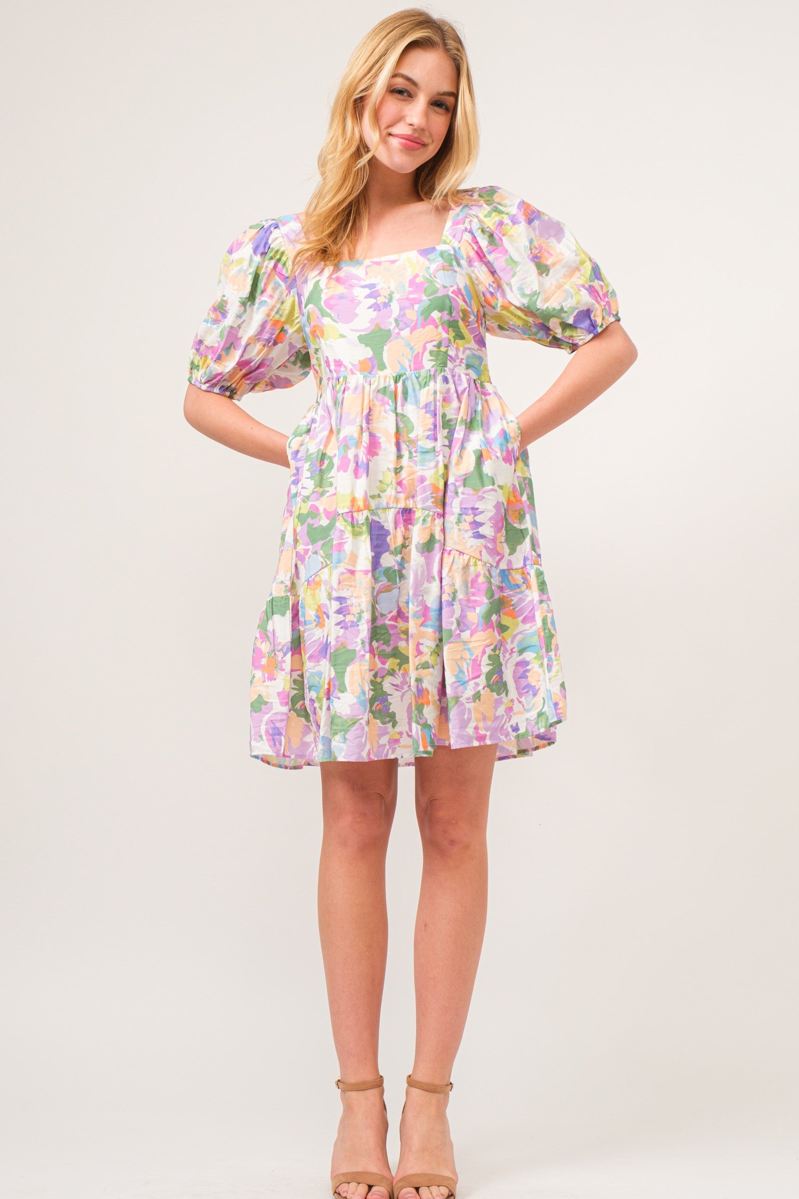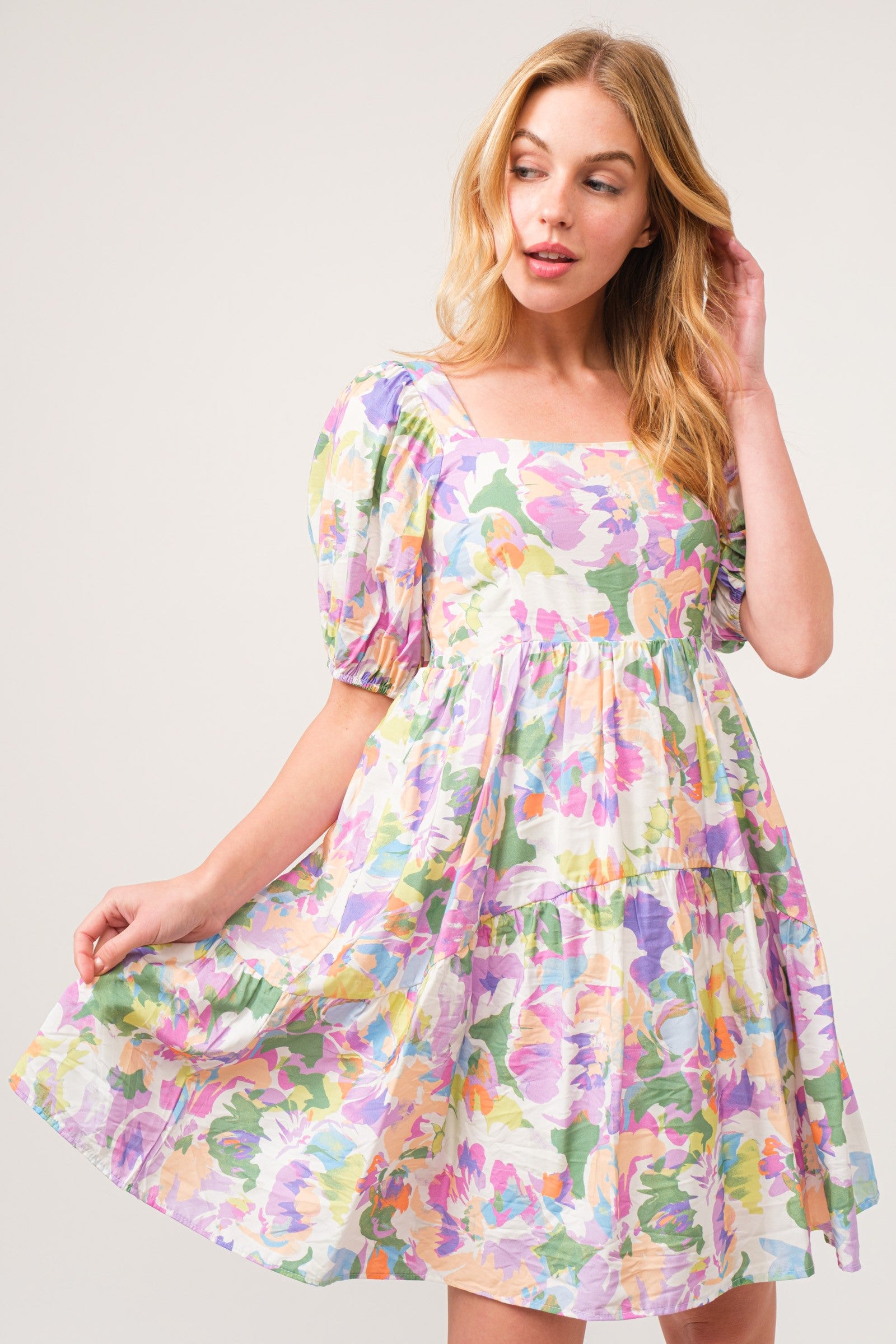Step into spring with grace in this square neck mini dress featuring a charming floral print. The square neckline adds a touch of sophistication, the puff sleeves bring a playful and romantic feel to the dress. The mini length is perfect for embracing the warmer weather! You simply can't go wrong with this piece!