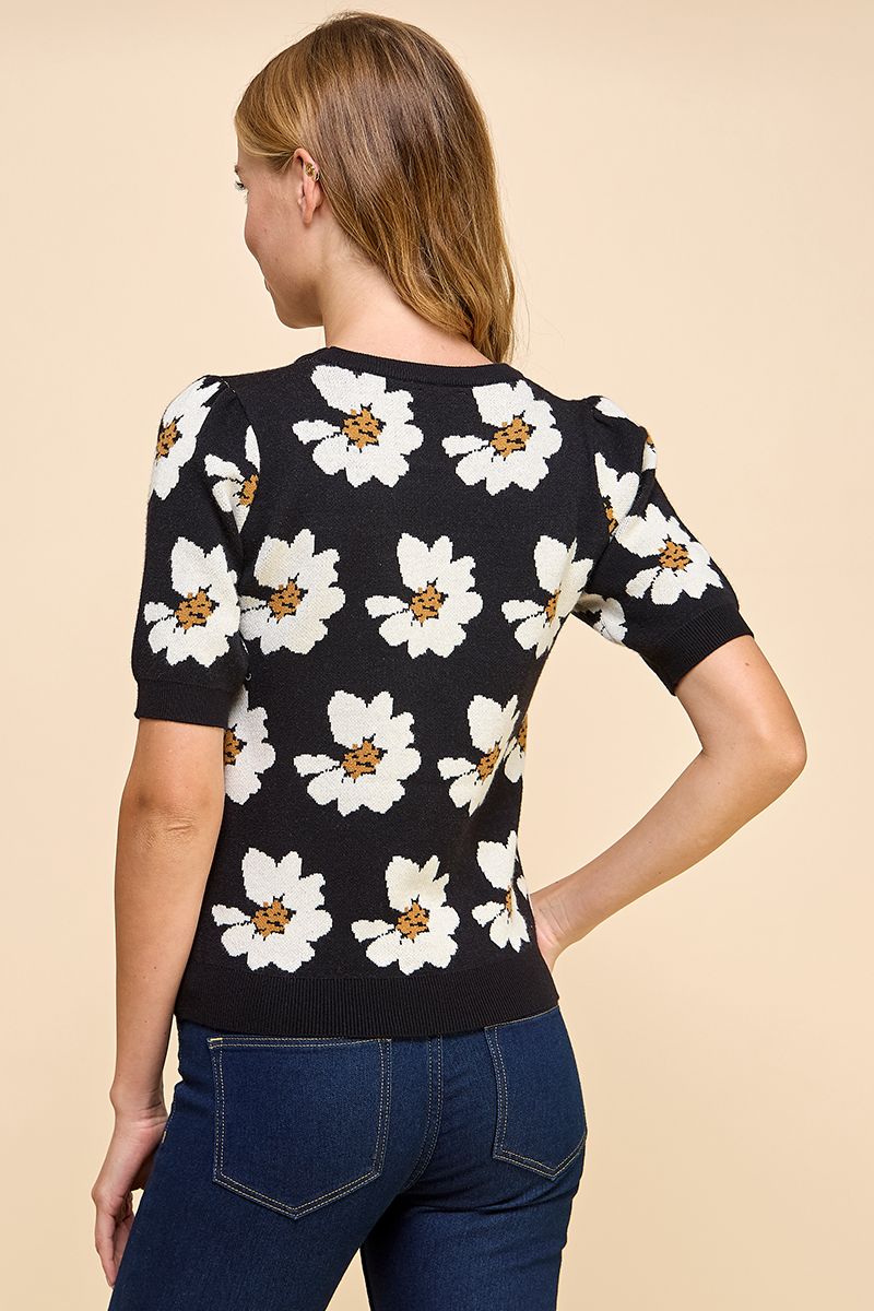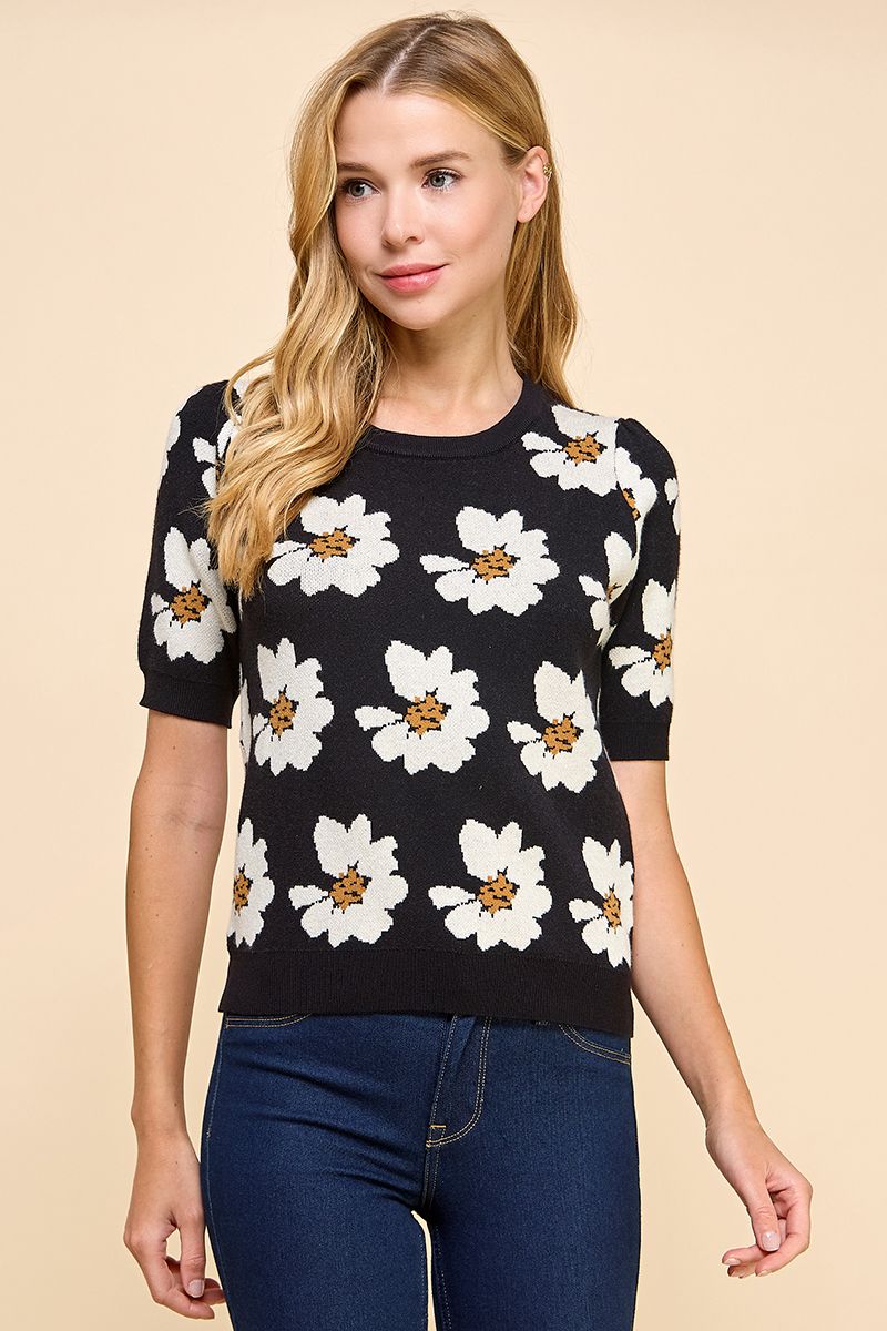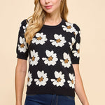 Floral Short Sleeve Sweater