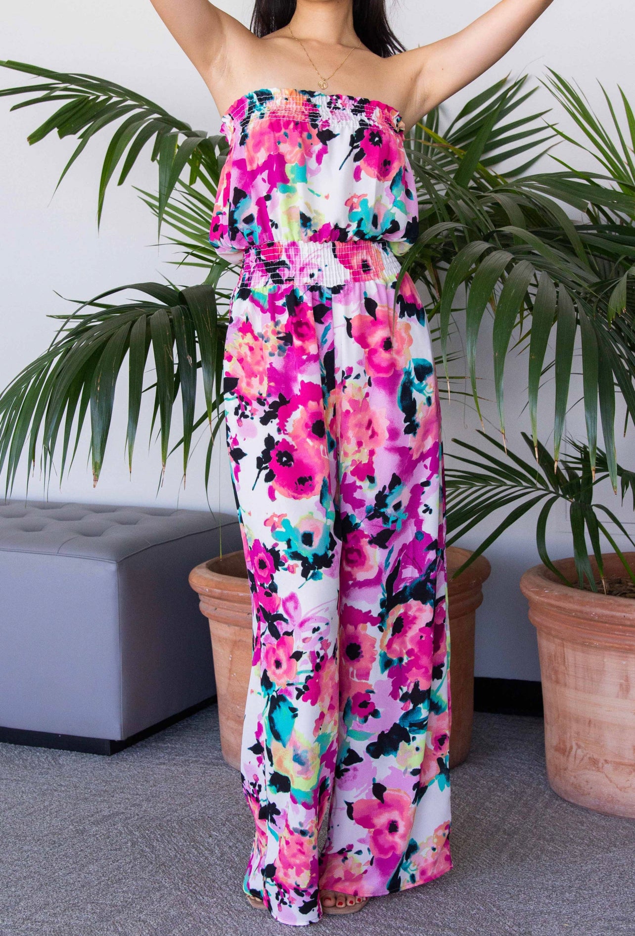 - Woven fabrication - Semi sheer - Smocked waist band and neckline - Floral print