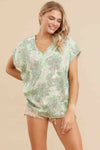 Picture yourself strolling through a blooming garden in our charming floral print top. With its flattering V-neck and delightful short kimono sleeves, its the epitome of effortless chic.