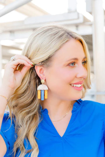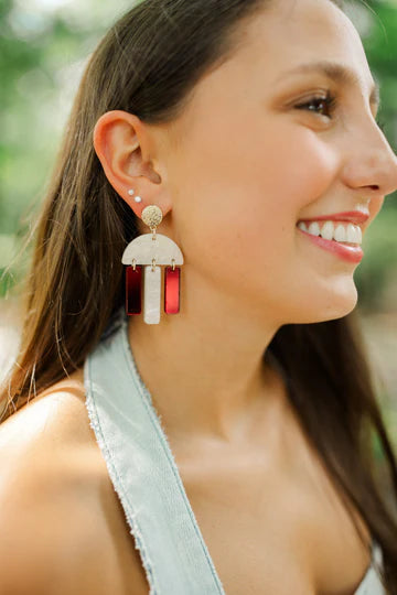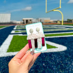 These acrylic huddle drop earring available in game day colors are the ultimate accessory for fans who want to show off their team spirit with style. They dangle just enough to catch the light, adding a playful and energetic vibe to your look, whether you're at the stadium, a watch party, or just running errands on game day. They're the kind of earrings that spark conversations and let everyone know you're all about supporting your team—while staying effortlessly chic.