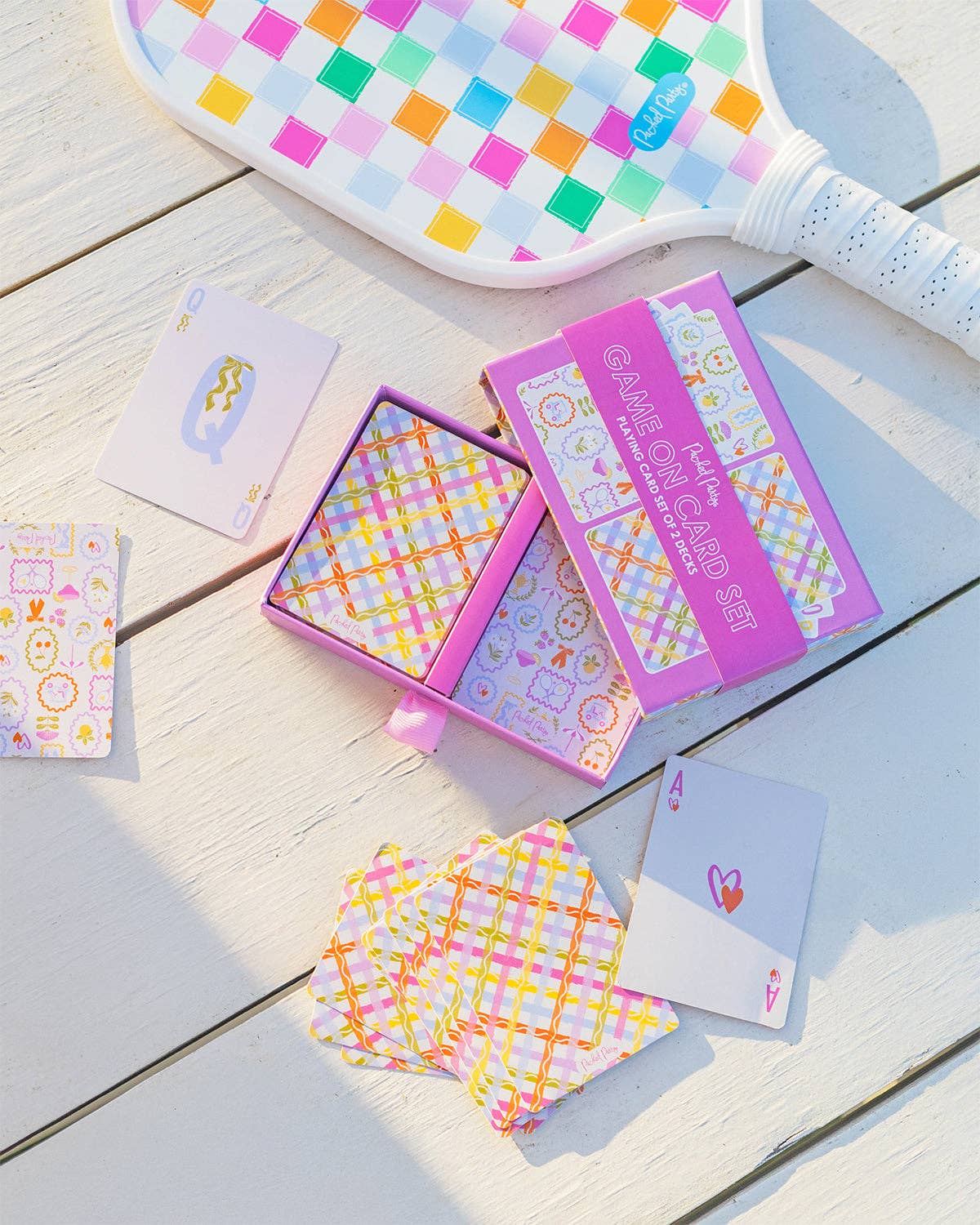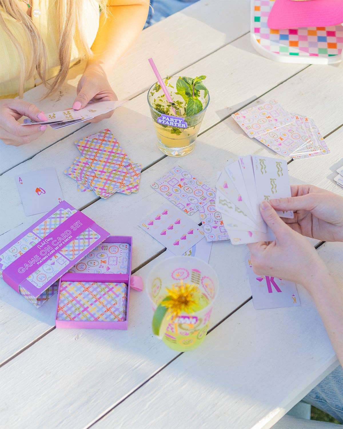 Get ready to deal in style with our Game On Card Set! This set of two beautifully designed decks features classic country club patterns, perfect for game nights, travel, or a casual round of cards on the patio. With its chic plaid and charming icons, it’s a playful addition to any game collection. Perfect for bridge, poker, or your favorite card games, this set brings a touch of elegance to every hand. Shuffle up and let the games begin!