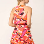 Geo print chiffon halter neck dress Self: 100% poly Lining: 100% poly