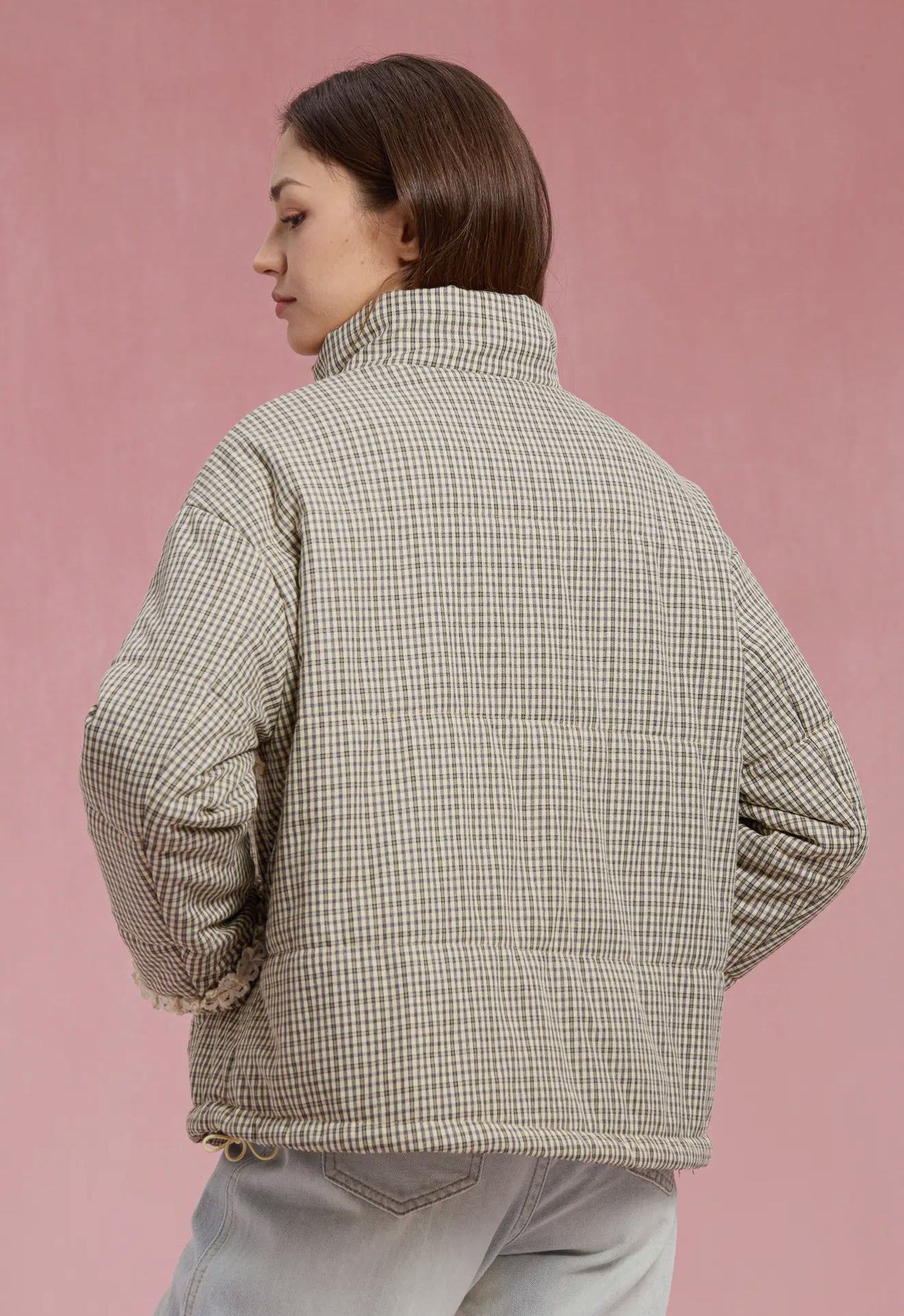 Gingham Lace Puffer jacket