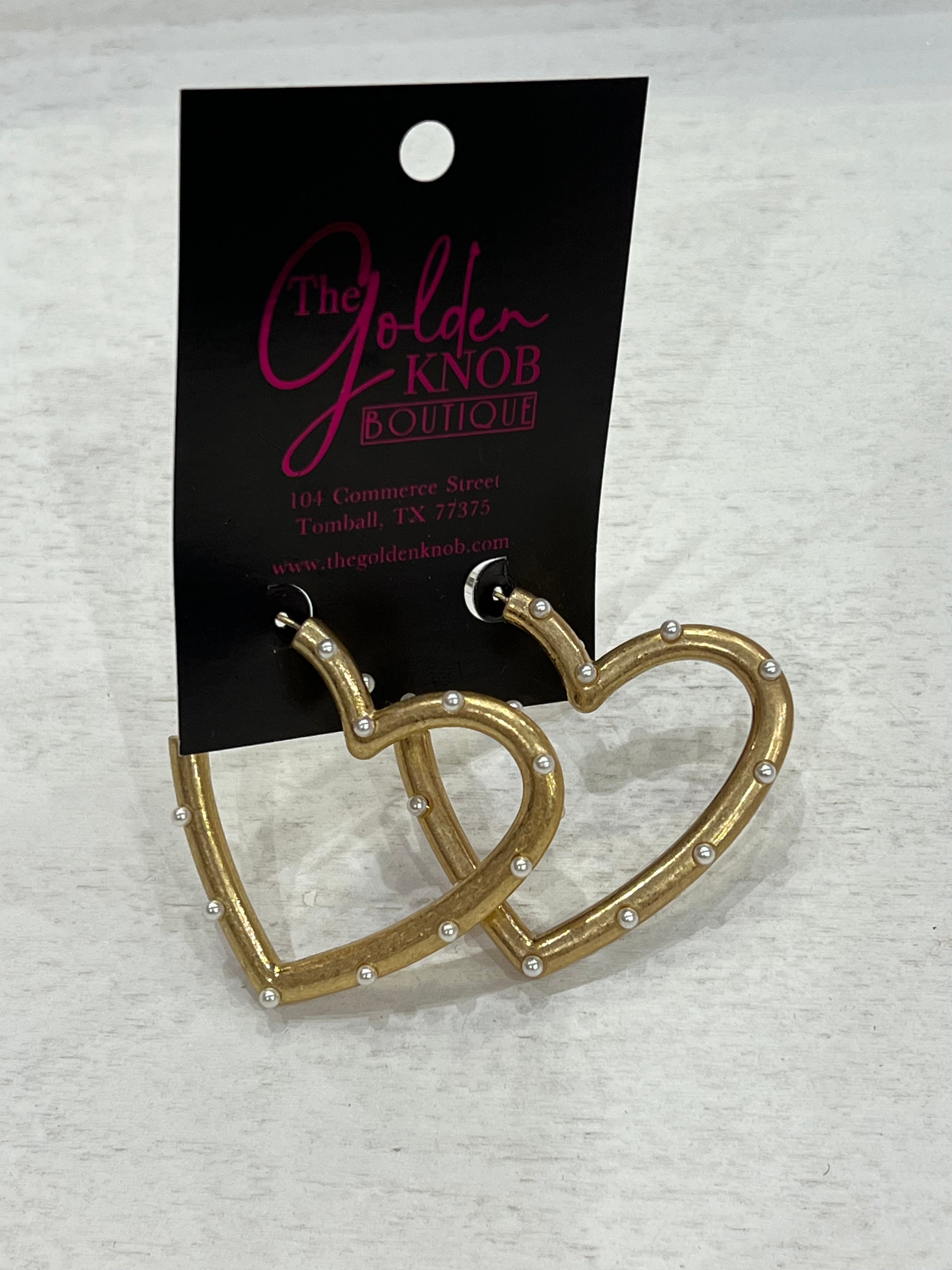 These gold heart earrings are the epitome of elegance and romance. The heart-shaped design exudes a timeless charm, while the subtle pearl accents add a touch of sophistication. They are not just earrings; they're a delicate statement of love and grace!
