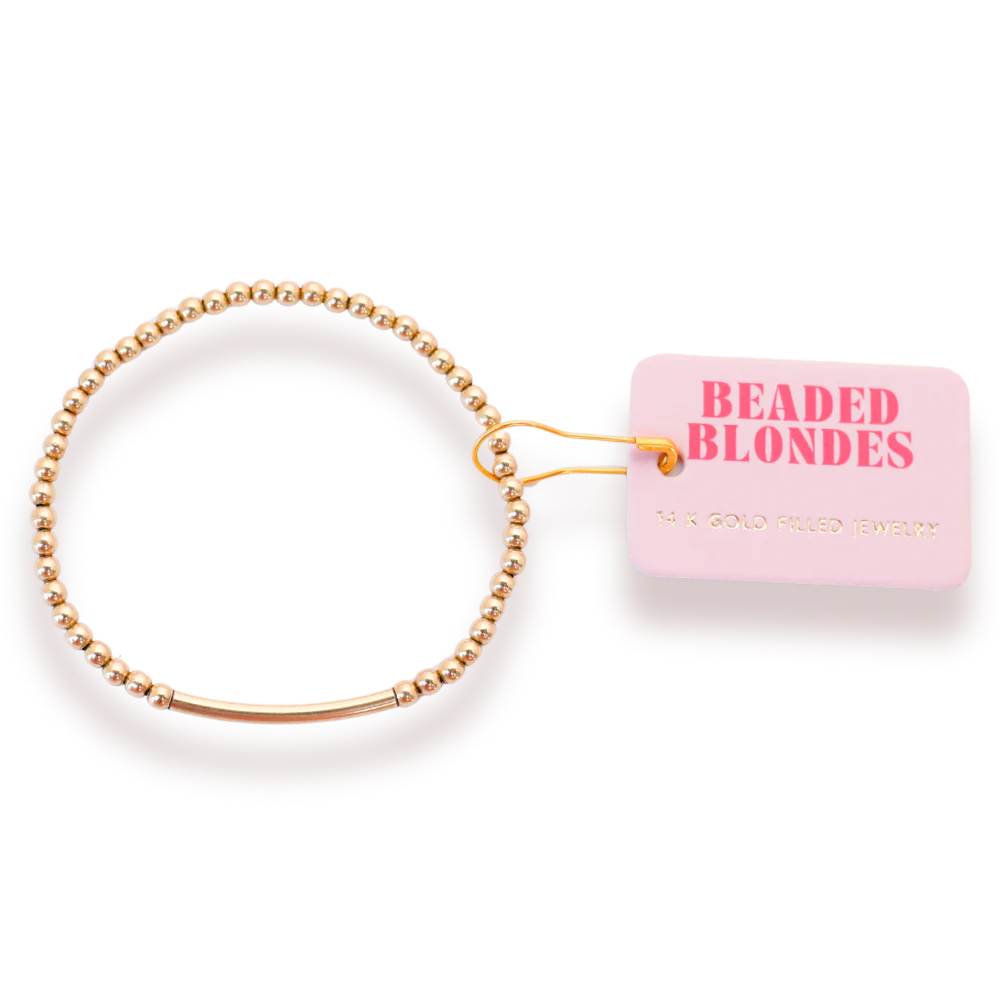 The Gold Bar bracelet is 3mm beads + gold bar.