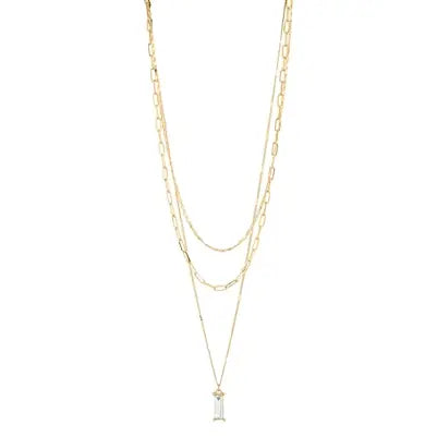 Indulge in the latest trends with this Gold Chain and Crystal 3 Layered Necklace. This Pendant/Charm Necklace offers a unique blend of style and sophistication. Designed with an adjustable length of 16"-18", it's perfect for any occasion. The layered design adds a contemporary touch, while the crystal detailing lends a hint of glamour. A perfect accessory to elevate your fashion quotient.