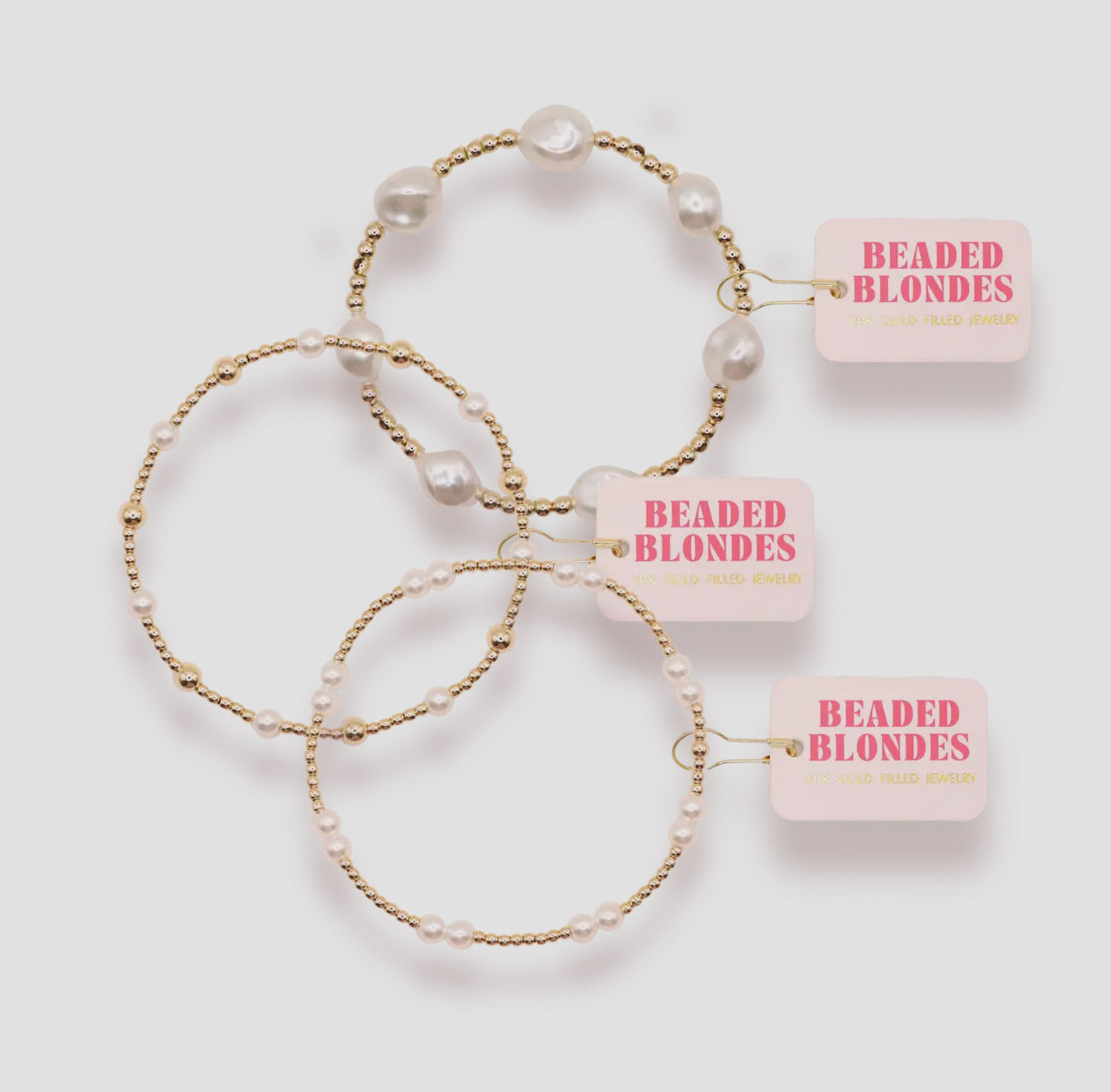Beaded Blondes offers styles with both freshwater and synthetic pearls-this design features synthetic pearls for a perfectly symmetrical, uniform look.