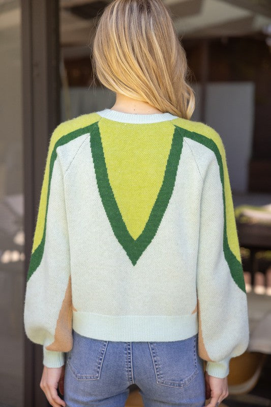 This sweater is both cozy and eye-catching, perfect for those cooler days. This top features a classic round neckline, offering a timeless silhouette. The color-blocked design gives it a modern twist, with bold, contrasting colors that make it stand out without being too flashy. The long sleeves keep you warm and add a bit of extra coverage, making it a great layering piece. Whether you’re lounging at home or heading out, this sweater top combines comfort with style effortlessly. It’s versatile enough to pair with jeans for a casual look or dress up with a skirt for something a bit more polished.