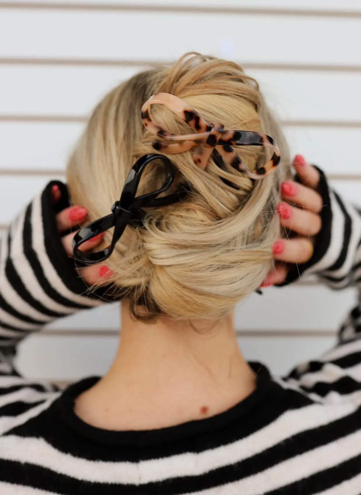 Comes with the cutest bow at the top that peaks out at the top of your bun. We are OBSESSED with how this looks. You can wear one or both in your hair.