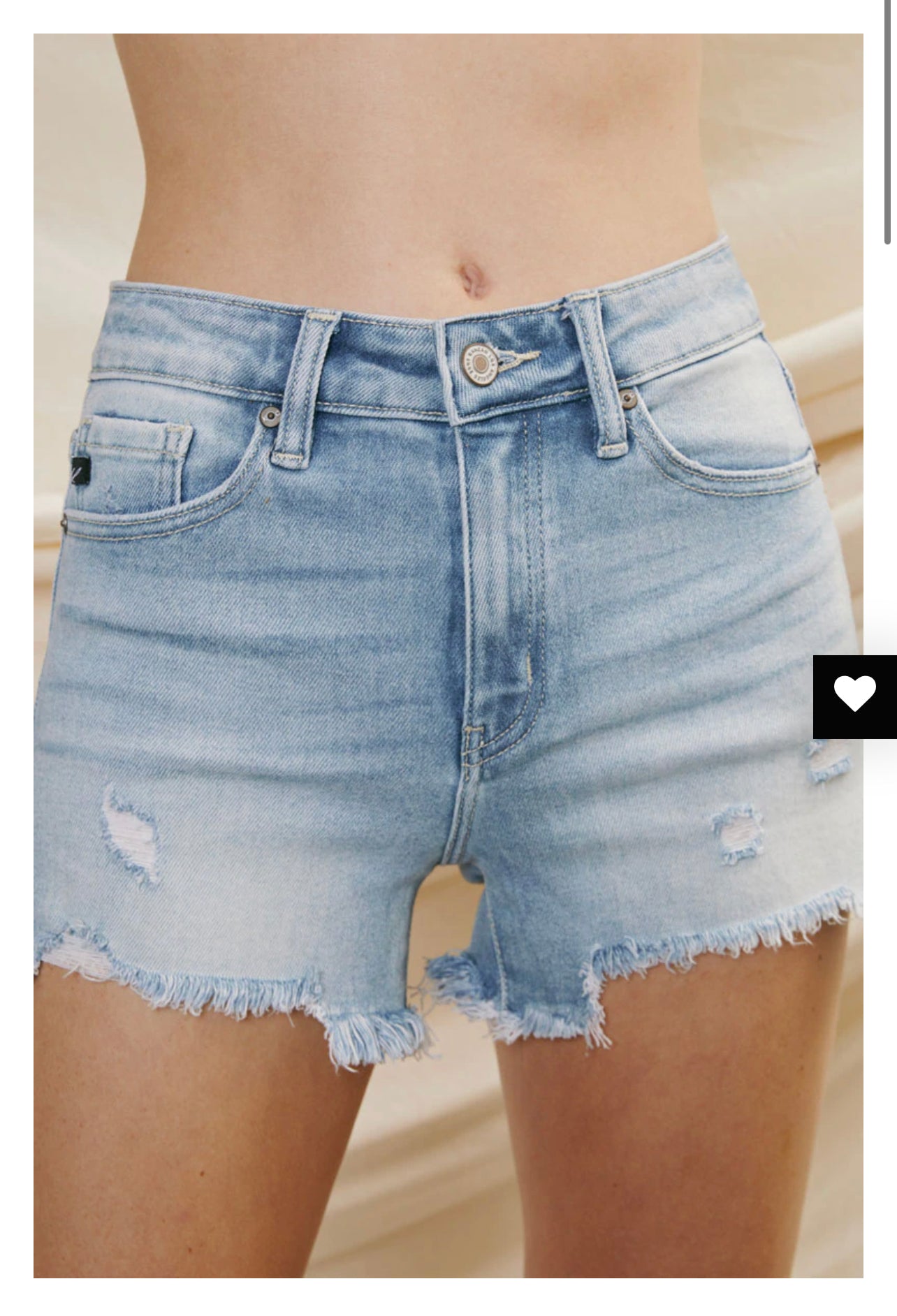 Hazel High Rise Shorts - Medium Wash - Shredded - Distressed