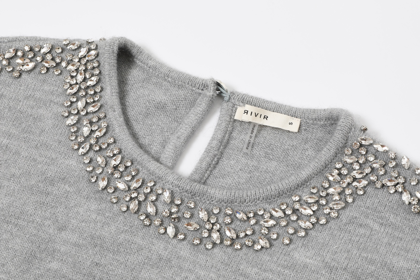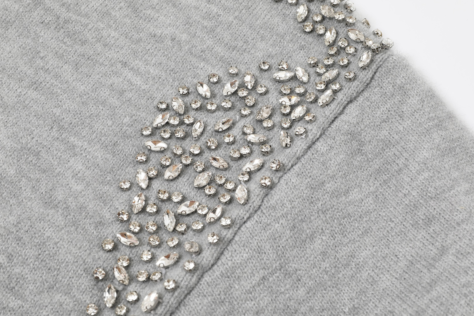 Add instant sparkle to your wardrobe with this stunning embellished crystal knit sweater. Soft, lightweight, and effortlessly chic, it features shimmering crystal detailing along the neckline and shoulders—perfect for elevating any outfit with a touch of glam.