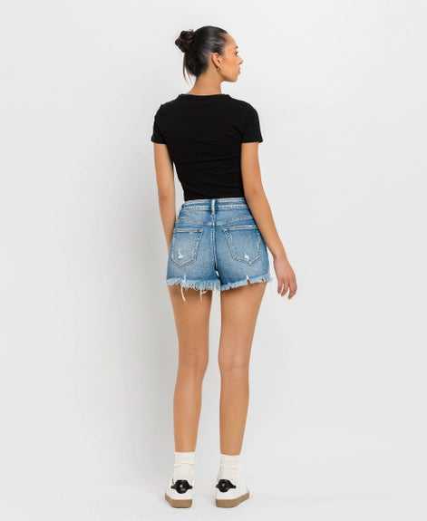 Elevate your summer wardrobe with these High Rise Distressed Criss Cross Shorts, the epitome of edgy yet chic style. Crafted from comfort stretch denim, these shorts ensure a snug yet flexible fit that moves with you throughout the day. With a high rise waist, they offer both comfort and trendiness, accentuating your curves while providing ample coverage. The distressed detailing adds a touch of urban flair, giving off effortlessly cool vibes. The standout feature of these shorts is the criss-cross waistband, adding a unique and eye-catching twist to a classic silhouette. It not only enhances the waistline but also adds an element of intrigue to your ensemble.